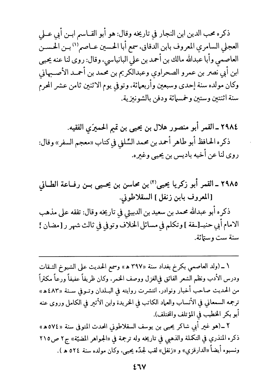 (¬2) (هو غير أبي شاكر يحيى بن يوسف السقلاطوني المحدث المتوفى سنة «574 هـ» ذكره المنذري في التكملة والذهبي في تاريخه وله ترجمة في «الجواهر المضيّة» ج 2 ص 215 ونسبوه أيضا «الدارقزي» و «زنفل» لقب لجدّه يحيى، وكان مولده سنة 524 هـ).