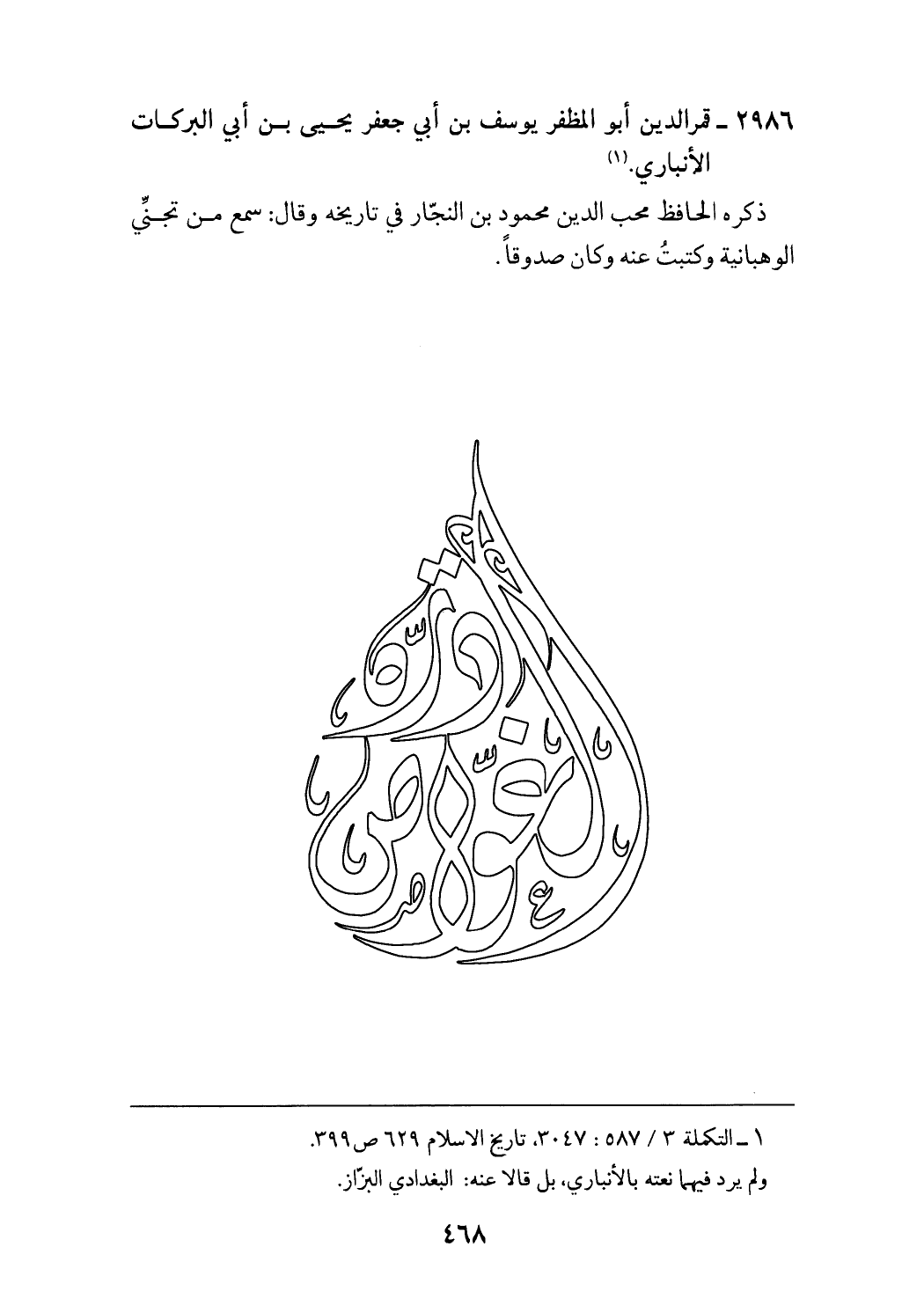 2986 - قمر الدين أبو المظفر يوسف بن أبي جعفر يحيى بن أبي البركات الأنباري. (¬1)
