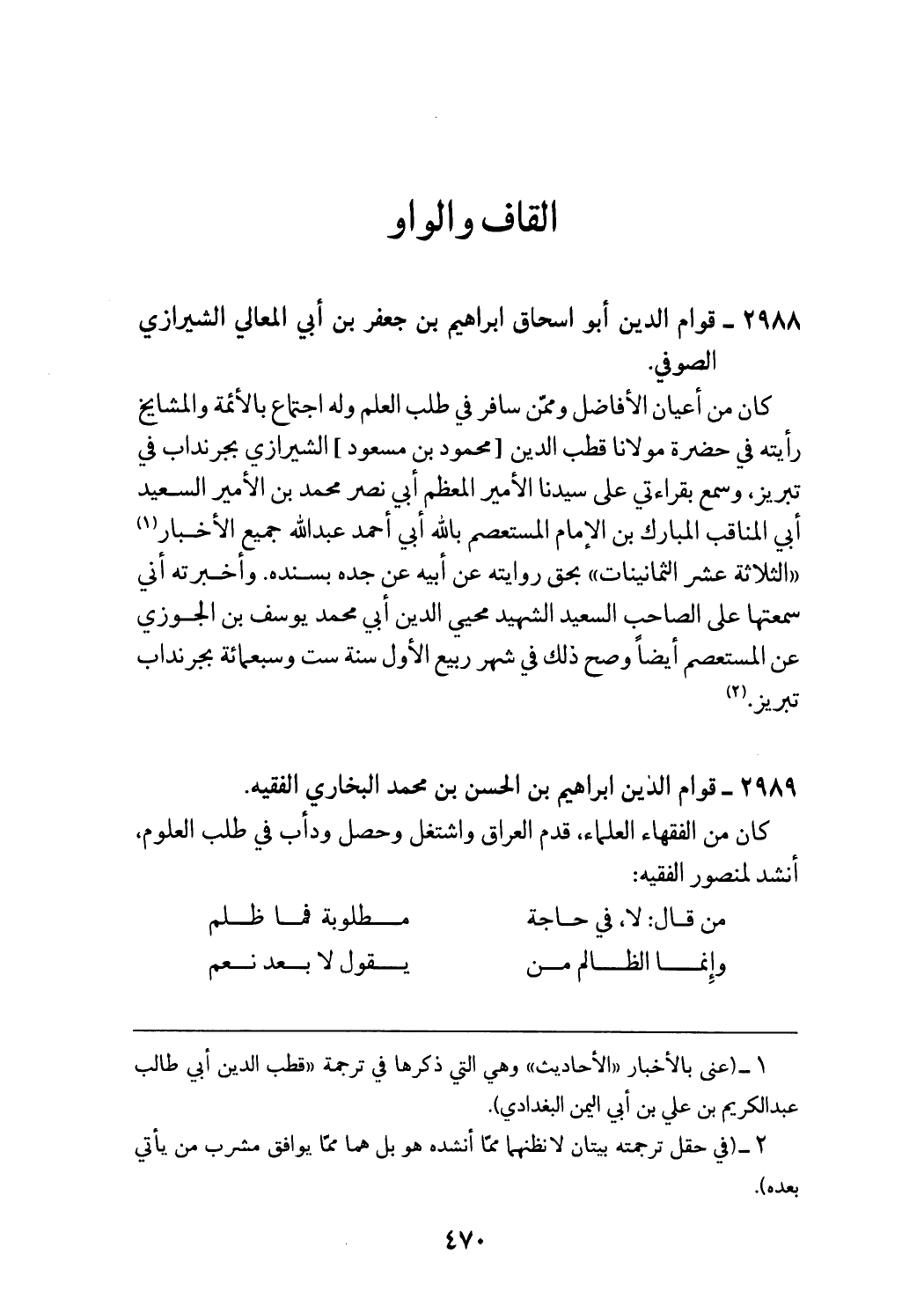2988 - قوام الدين أبو اسحاق ابراهيم بن جعفر بن أبي المعالي الشيرازي