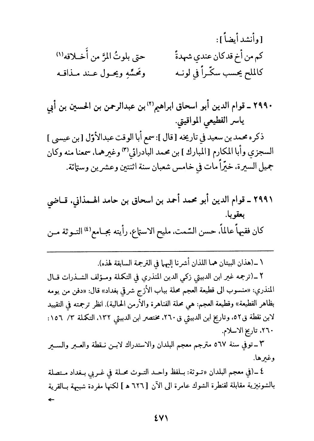 (¬1) (هذان البيتان هما اللذان أشرنا إليهما في الترجمة السابقة لهذه).