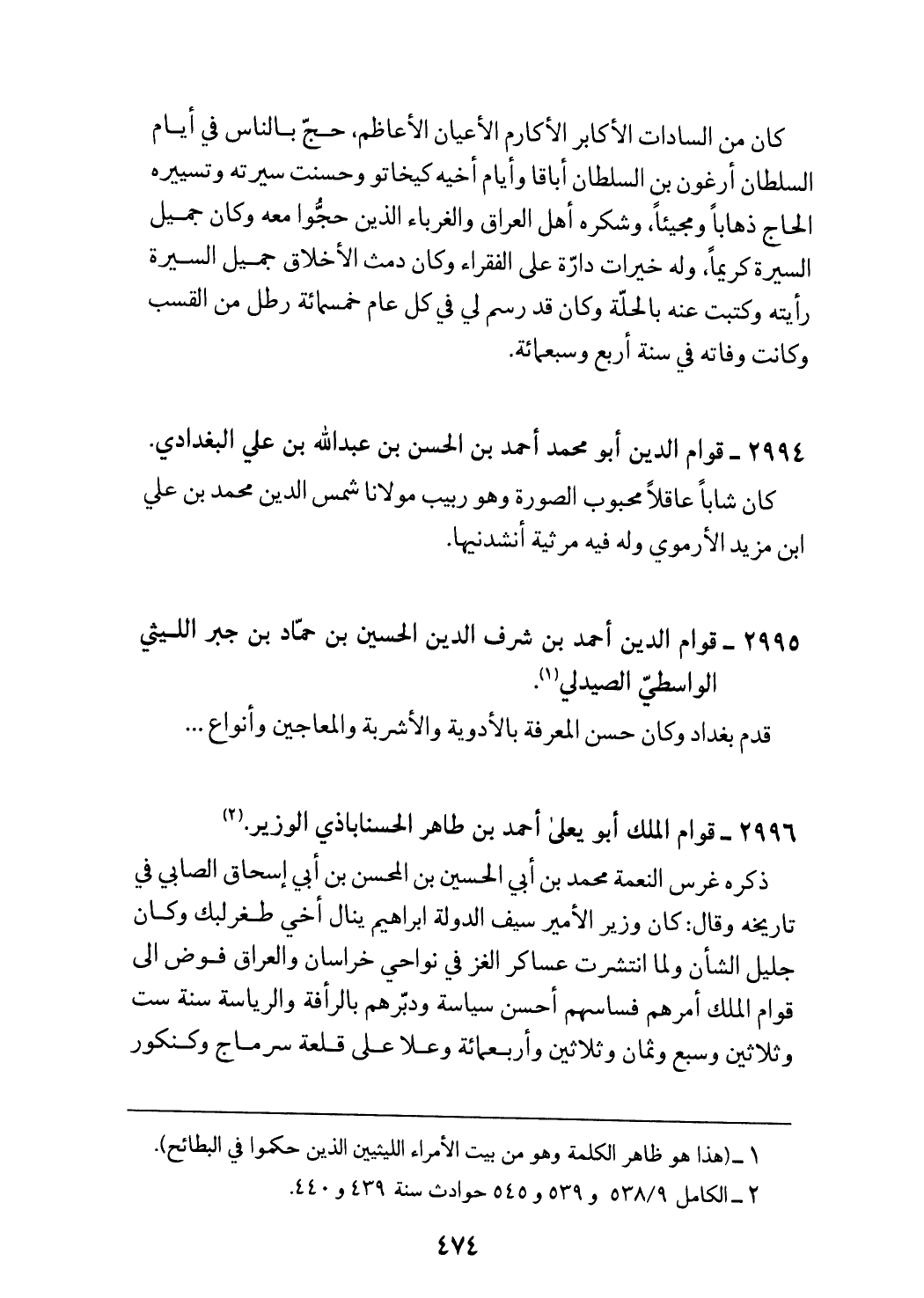 2996 - قوام الملك أبو يعلى أحمد بن طاهر الحسناباذي الوزير. (¬2)
