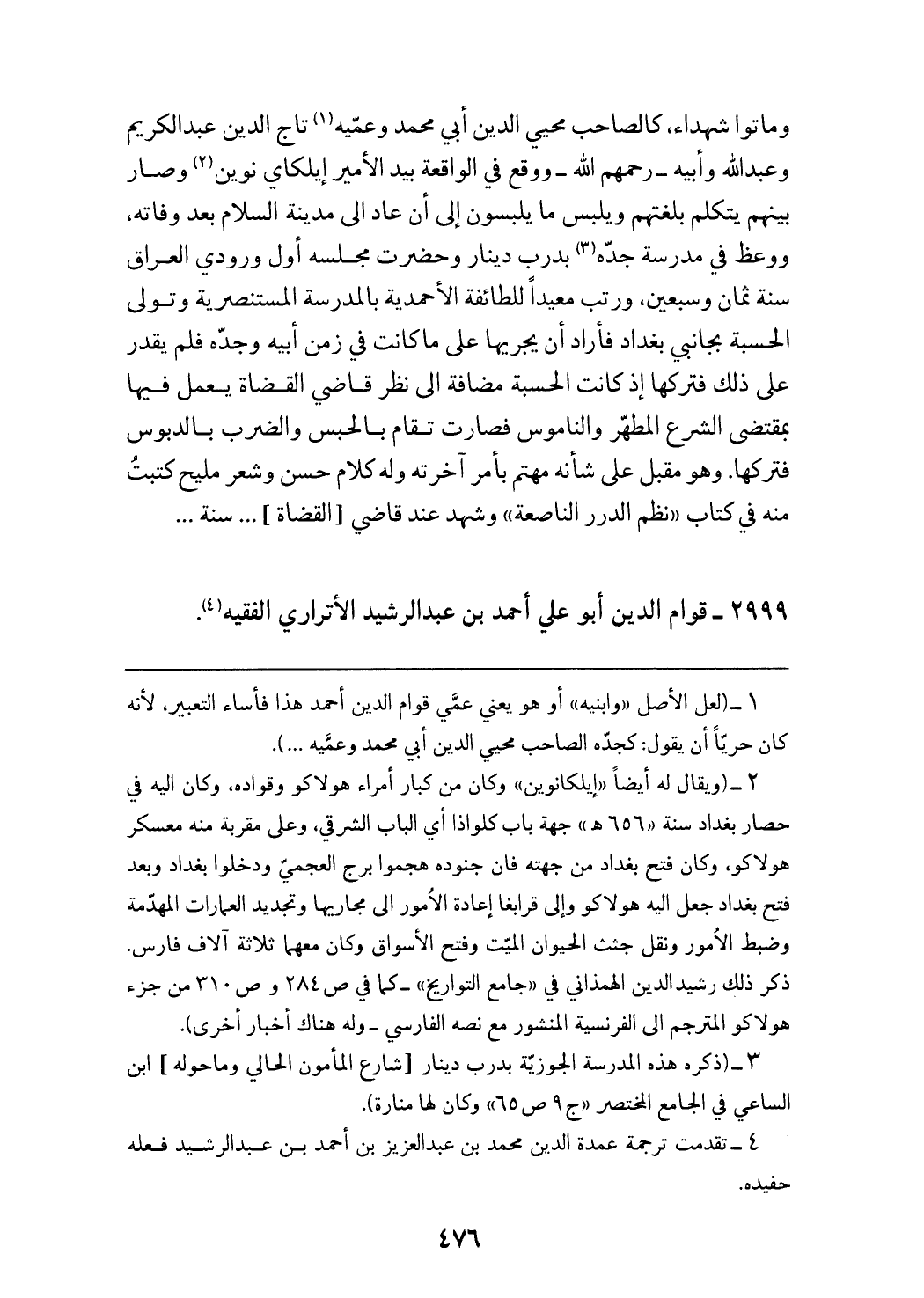 2999 - قوام الدين أبو علي أحمد بن عبد الرشيد الأتراري الفقيه (¬4).