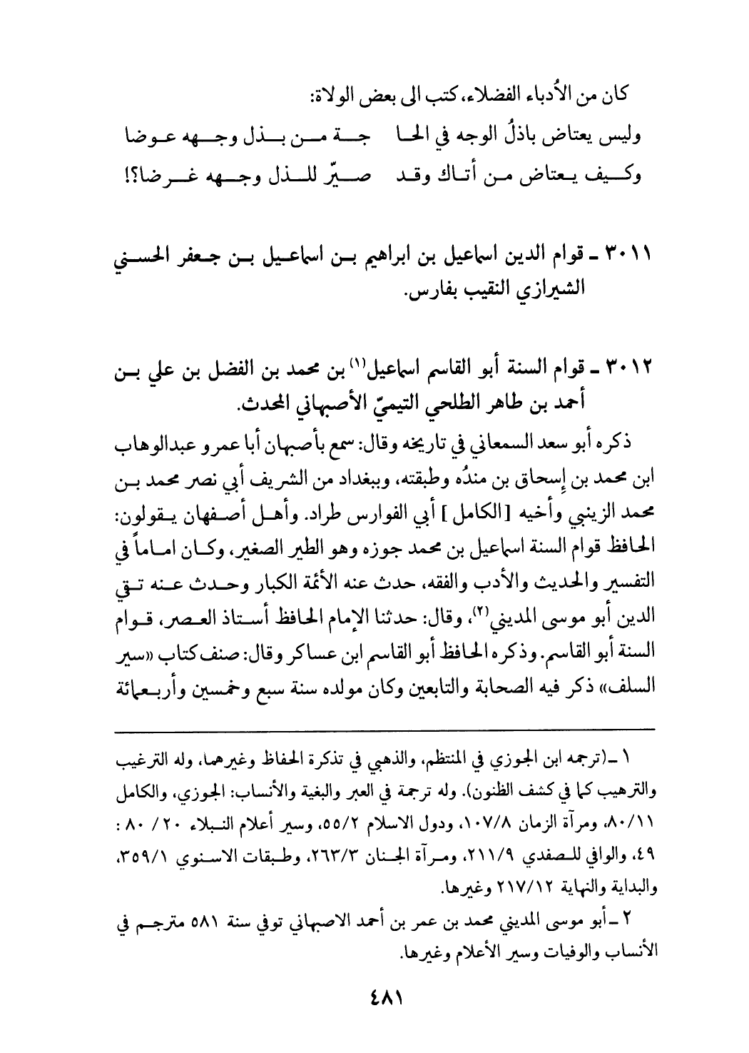 (¬2) أبو موسى المديني محمد بن عمر بن أحمد الاصبهاني توفي سنة 581 مترجم في الأنساب والوفيات وسير الأعلام وغيرها.