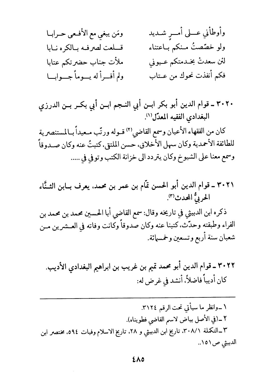 3022 - قوام الدين أبو محمد تميم بن غريب بن ابراهيم البغدادي الأديب.