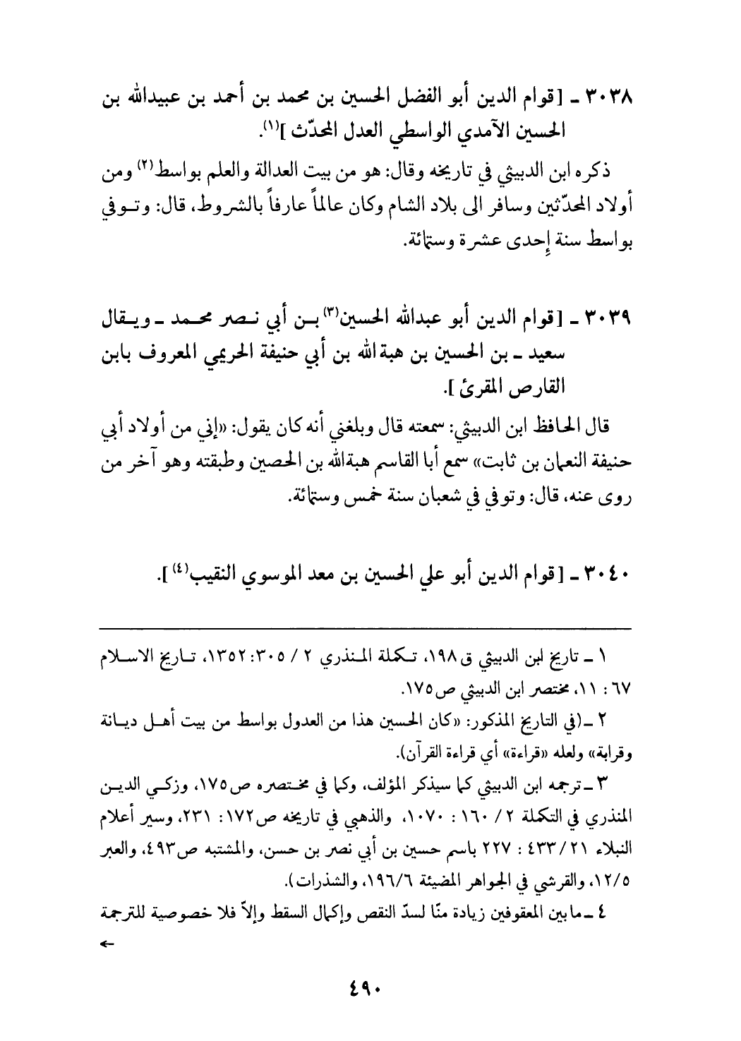 3040 - [قوام الدين أبو علي الحسين بن معد الموسوي النقيب (¬4)].