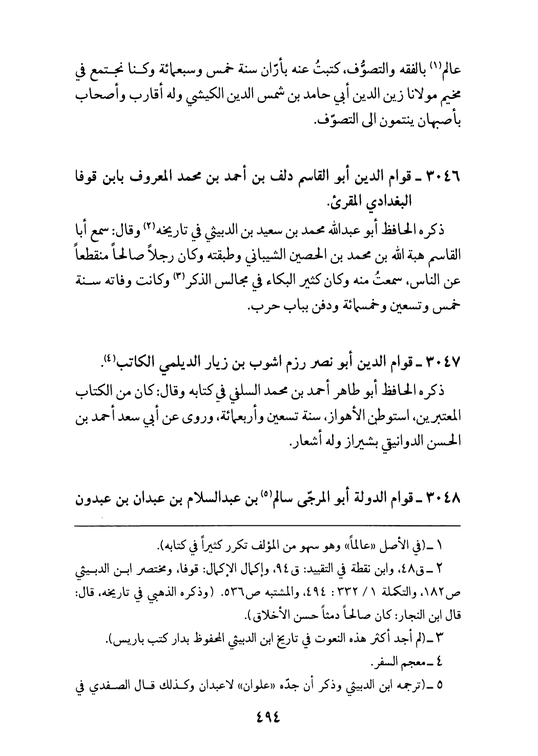 3048 - قوام الدولة أبو المرجّى سالم (¬5) بن عبد السلام بن عبدان بن عبدون