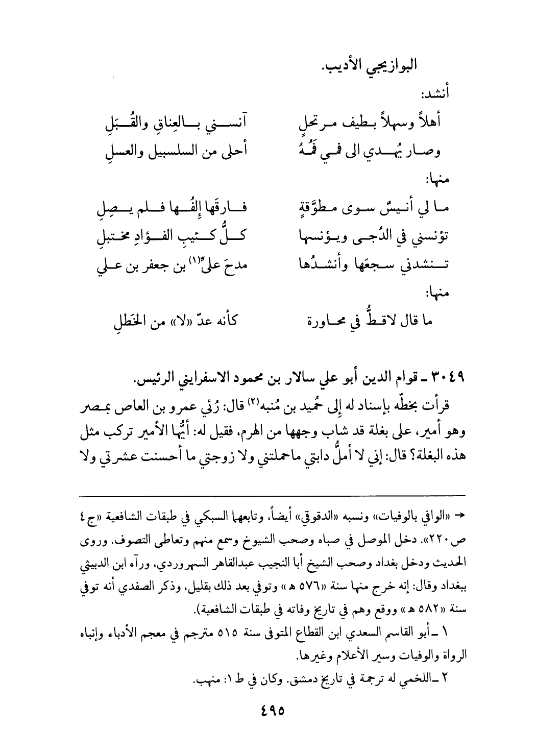 3049 - قوام الدين أبو علي سالار بن محمود الاسفرايني الرئيس.