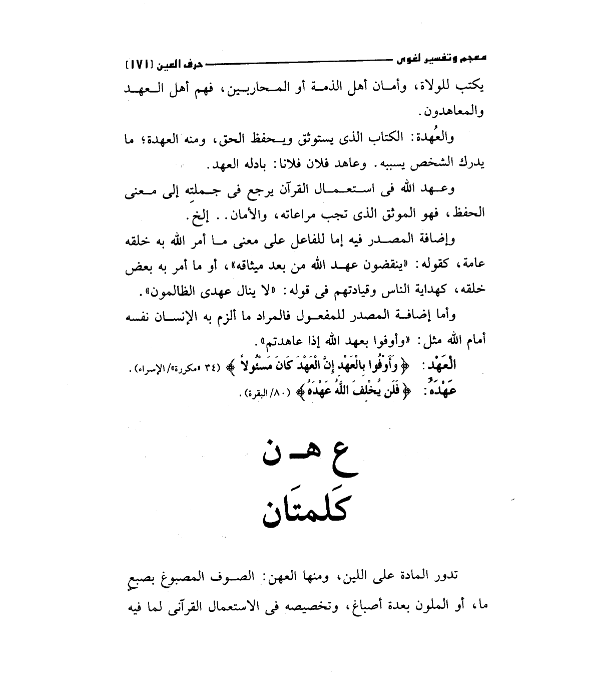 العهد: (وَأَوْفُوا بِالْعَهْدِ إِنَّ الْعَهْدَ كَانَ مَسْئُولاً) " 34"مكررة"/ الإسراء)