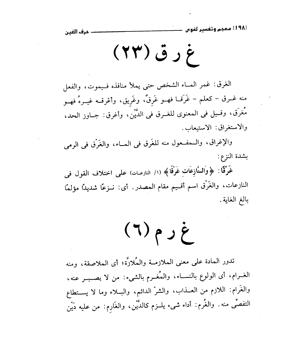 الغرق: غمر الماء الشخص حتي يملأ منافذه فيموت، والفعل منه غرق - كعلم - غرقا فهو، وغريق، وأغرقه غيره فهو مغرق، وقيل في المعنوي للغرق في الدين، وأغرق: جاوز الحد، والاستغراق: الاستيعاب.
