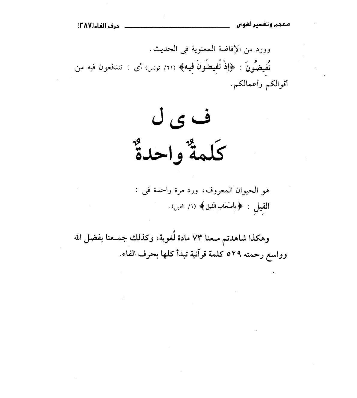 وهكذا شاهدتم معنا 73 مادة لغوية، وكذلك جمعنا بفضل الله وواسع رحمته 529كلمة قرآنية تبدأ كلها بحرف الفاء.