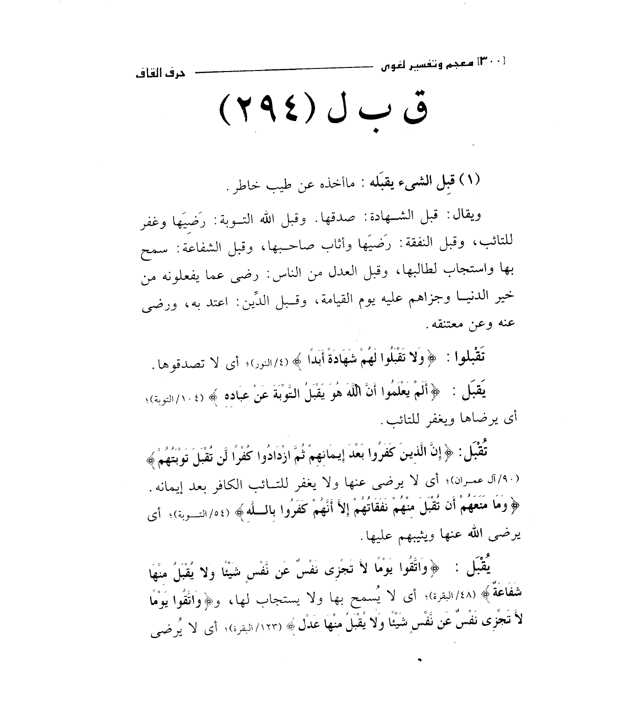 تقبل: (إِنَّ الَّذِينَ كَفَرُوا بَعْدَ إِيمَانِهِمْ ثُمَّ ازْدَادُوا كُفْراً لَنْ تُقْبَلَ تَوْبَتُهُمْ) " 90/آل عمران " أي لا يرضي