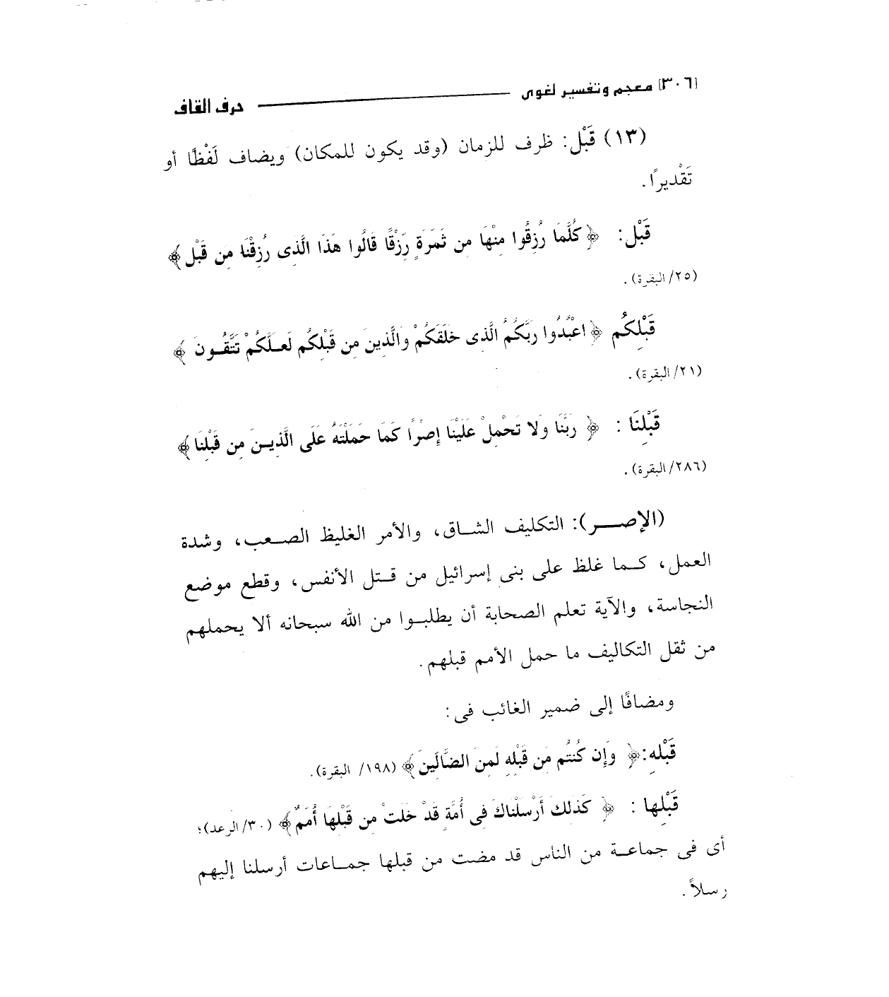 13 - قبل: ظرف للزمان (وقد يكون للمكان) ويضاف لفظا أو تقديرا.