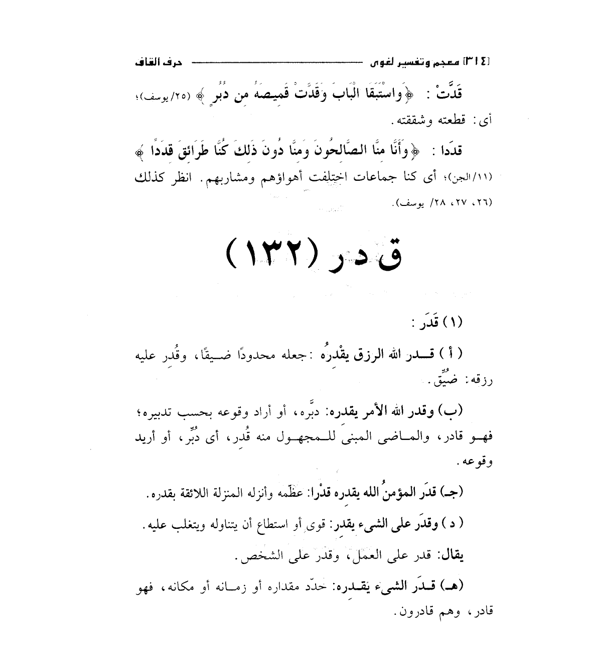 هـ - قدر الشئ يقدره: حدد مقداره أو زمانه أو مكانه، فهو قادر، وهم قادرون.