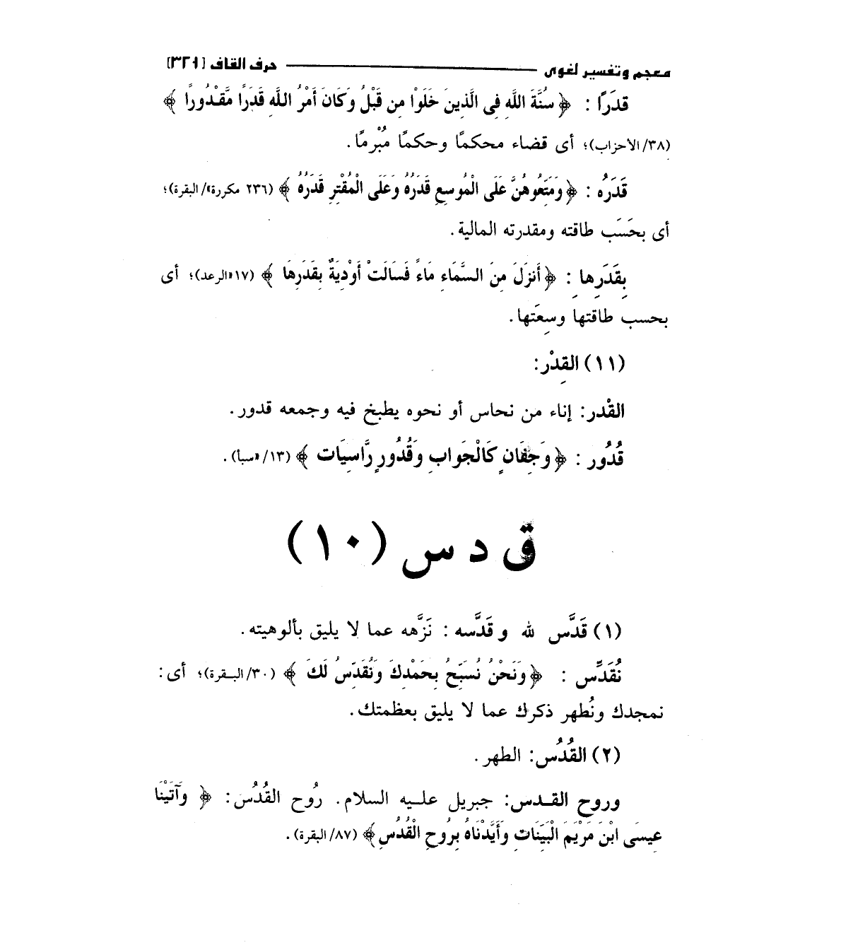 نقدس: (وَنَحْنُ نُسَبِّحُ بِحَمْدِكَ وَنُقَدِّسُ لَكَ) " 30/البقرة " أي نمجدك ونطهر ذكرك عما لا يليق بعظمتك