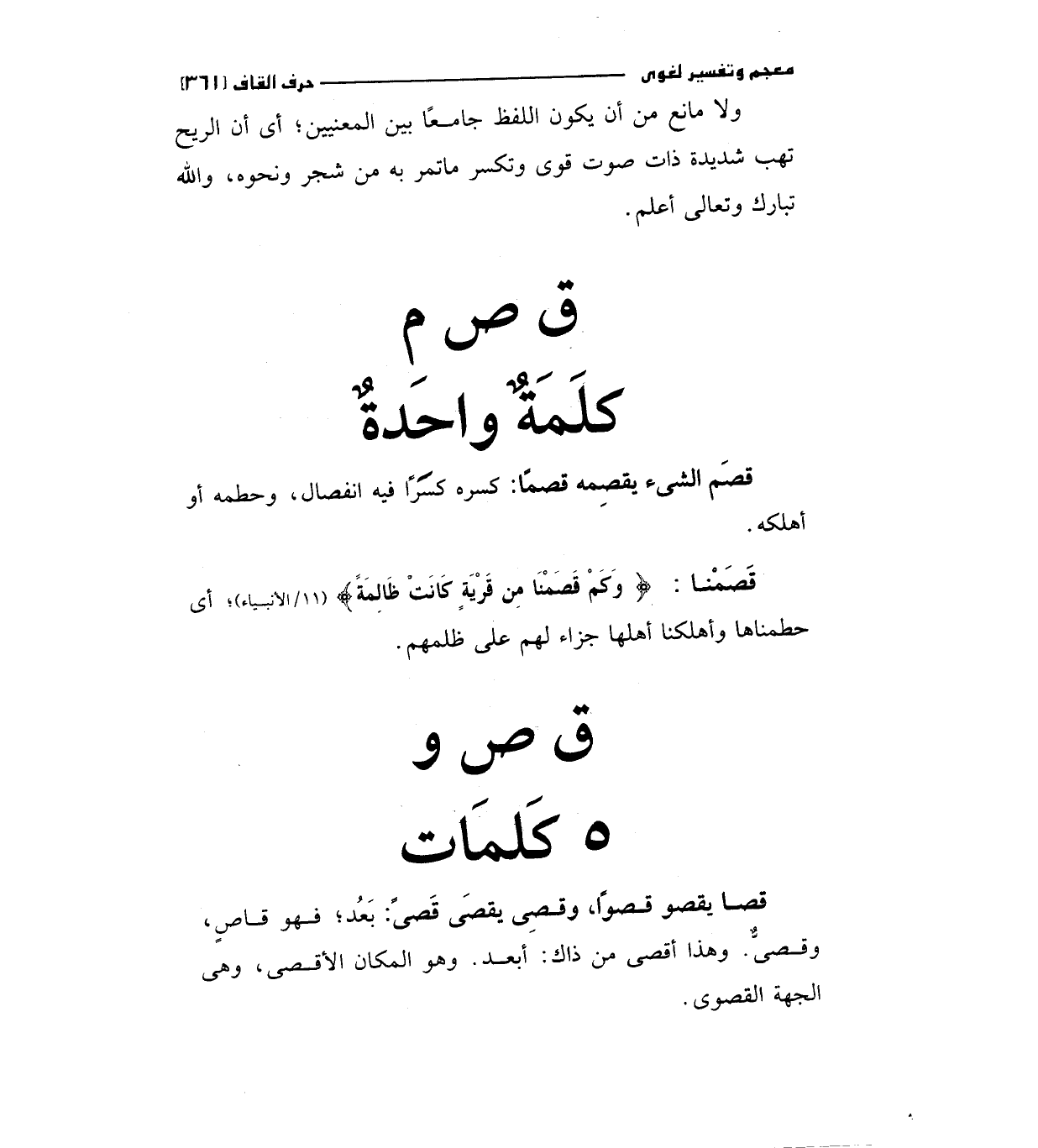 قصمنا: (وَكَمْ قَصَمْنَا مِنْ قَرْيَةٍ كَانَتْ ظَالِمَةً) " 11/الأنبياء " أي حطمناها وأهلكنا أهلها جزاء لهم علي ظلمهم.