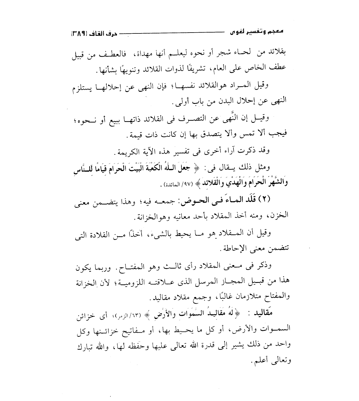 وقيل أن المقلاد هو ما يحيط بالشئ، أخذا من القلادة التي تتضمن معني الإحاطة.