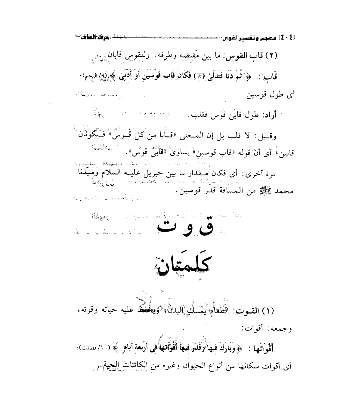 قاب: (ثُمَّ دَنَا فَتَدَلَّى (8) فَكَانَ قَابَ قَوْسَيْنِ أَوْ أَدْنَى) (9/ النجم) أى طول قوسين.