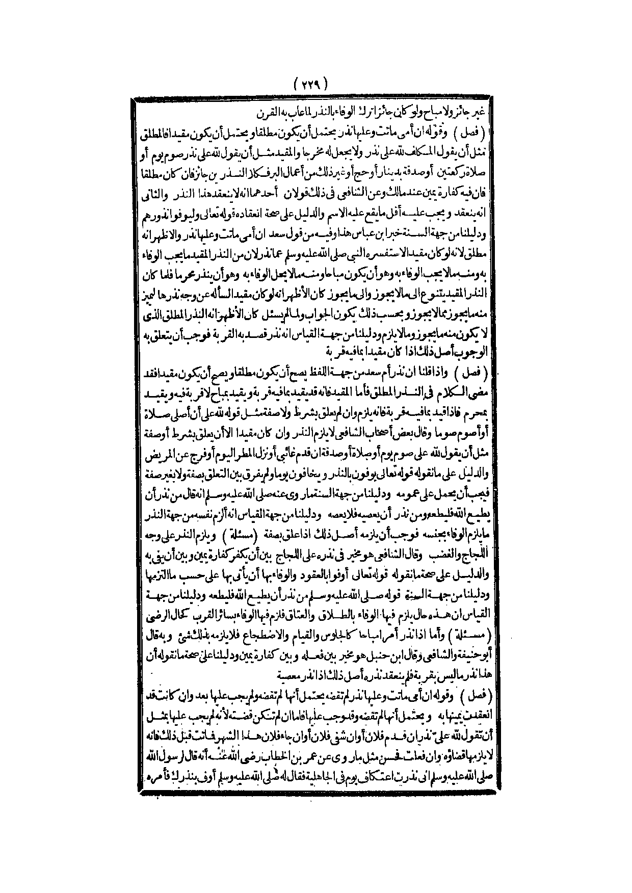 ـــــــــــــــــــــــــــــQغَيْرُ جَائِزٍ وَلَا مُبَاحٍ وَلَوْ كَانَ جَائِزًا تَرْكُ الْوَفَاءُ بِالنَّذْرِ لَمَا عَابَ بِهِ الْقَرْنَ.