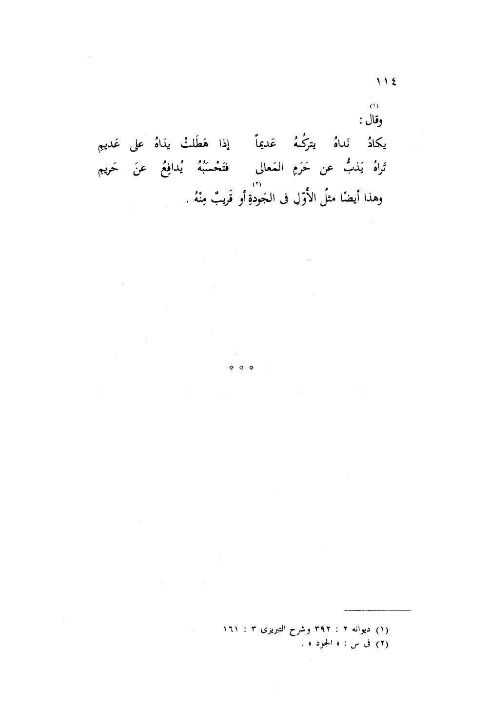 يكاد نداه يتركه عديمًا ... إذا هطلت يداه على عديم
