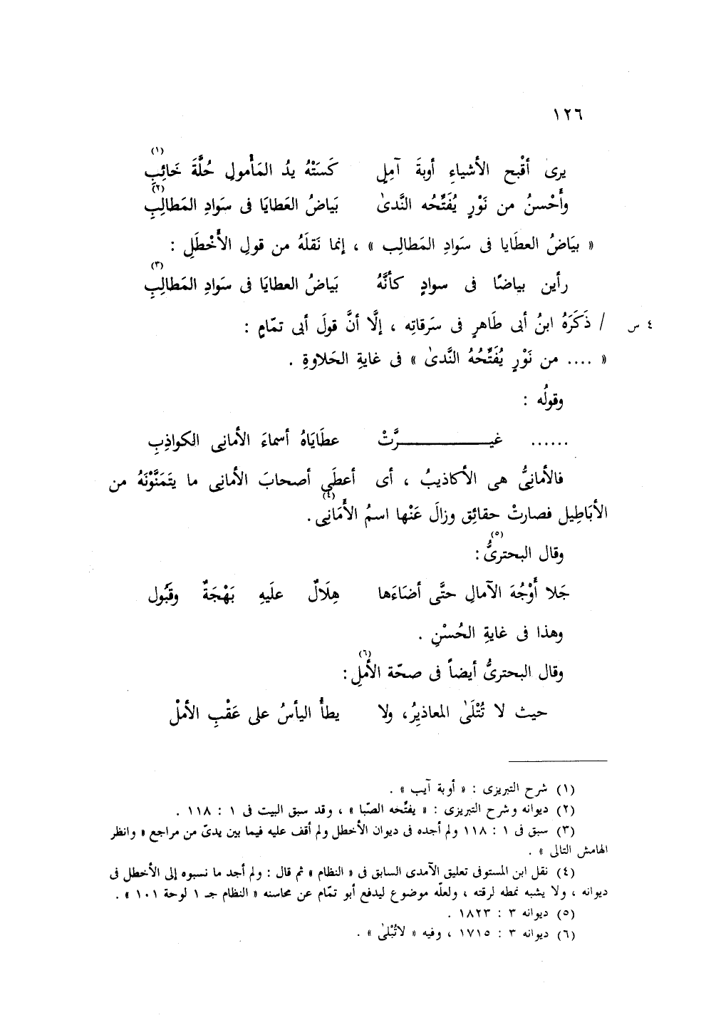 «بياض العطايا في سواد المطالب»، إنما نقله من قول الأخطل:
