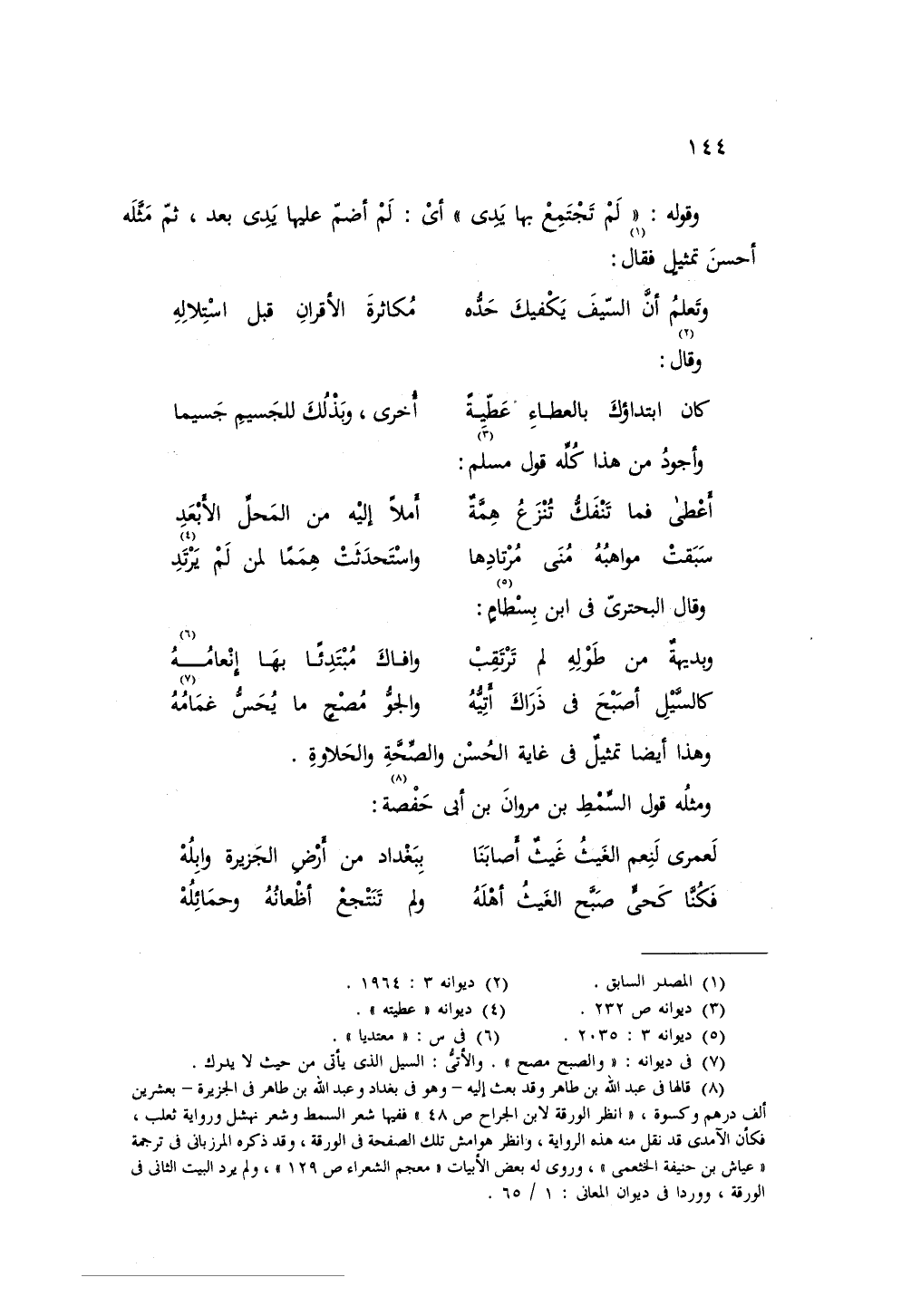 ومثله قول السمط بن مروان بن أبي حفصة: