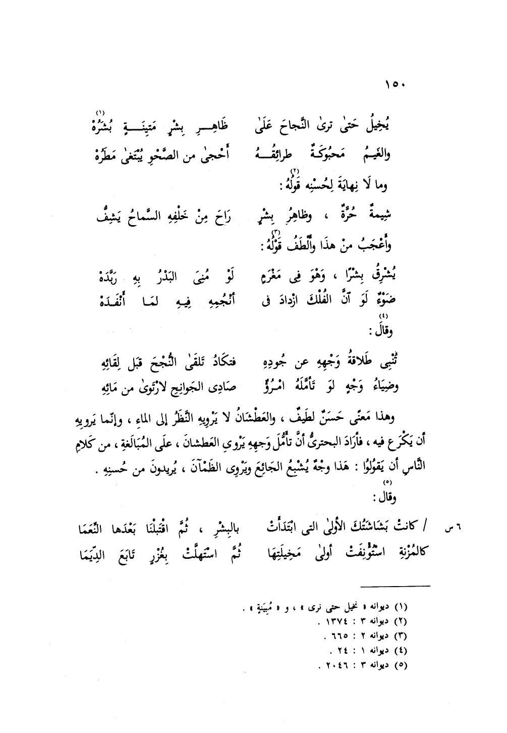وهذا معنى حسن لطيف، والعطشان لا يرويه النظر إلى الماء، وإنما يرويه أن يكرع فيه، فأراد البحتري أن تأمل وجهه يروي العطشان، على المبالغة، من كلام الناس أن يقولوا: هذا وجه يشبع الجائع ويروي الظمآن، يريدون من حسنه.