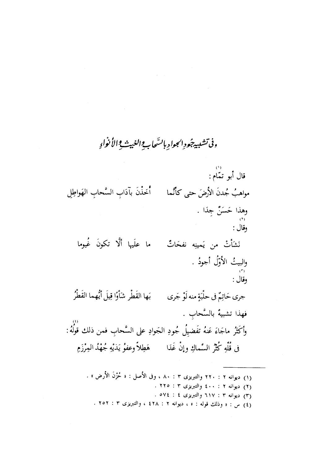 وأكثر ما جاء عنه تفضيل جود الجواد على السحاب فمن ذلك قوله: