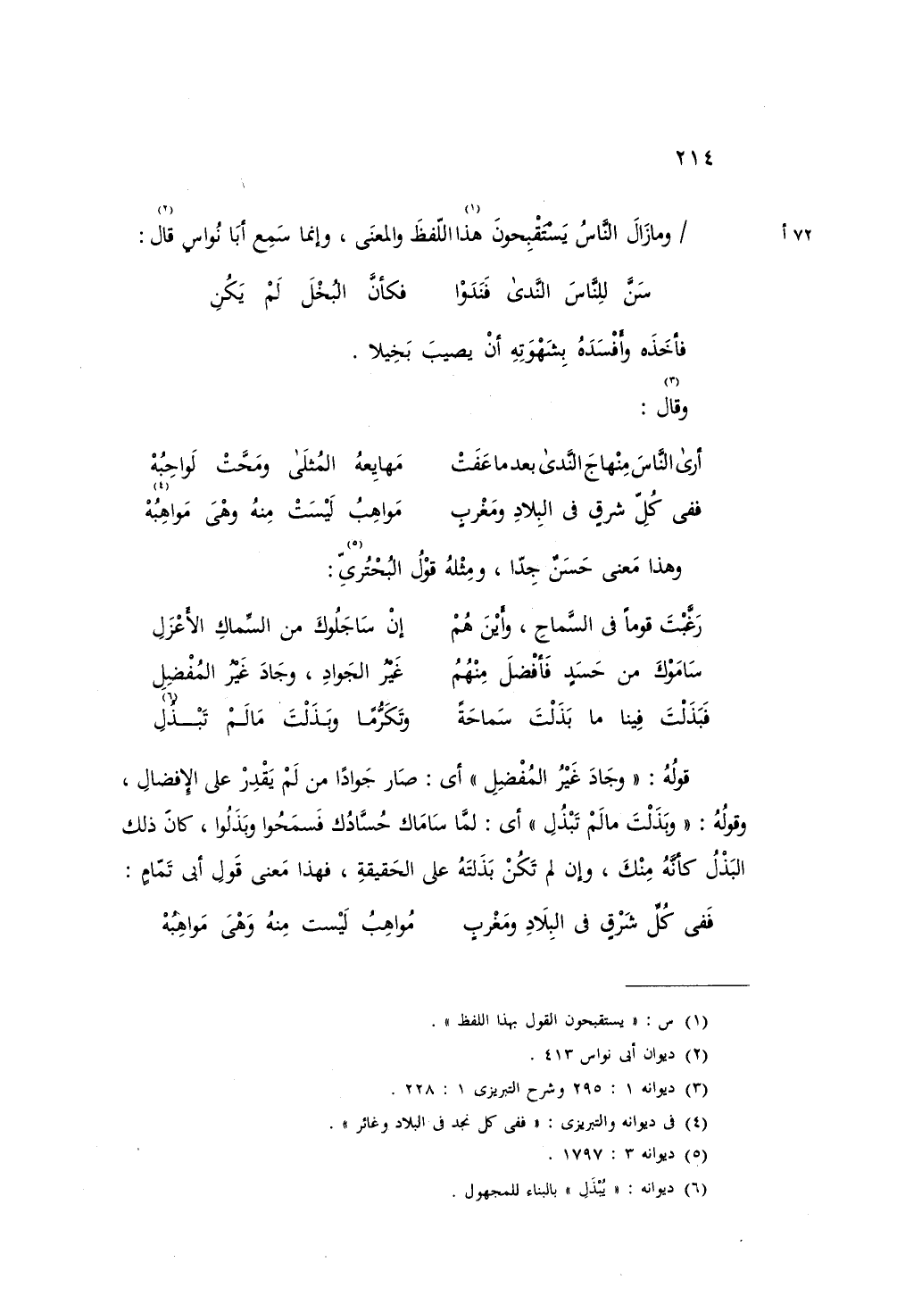 وما زال الناس يستقبحون هذا اللفظ والمعنى، وإنما سمع أبا نواس قال: