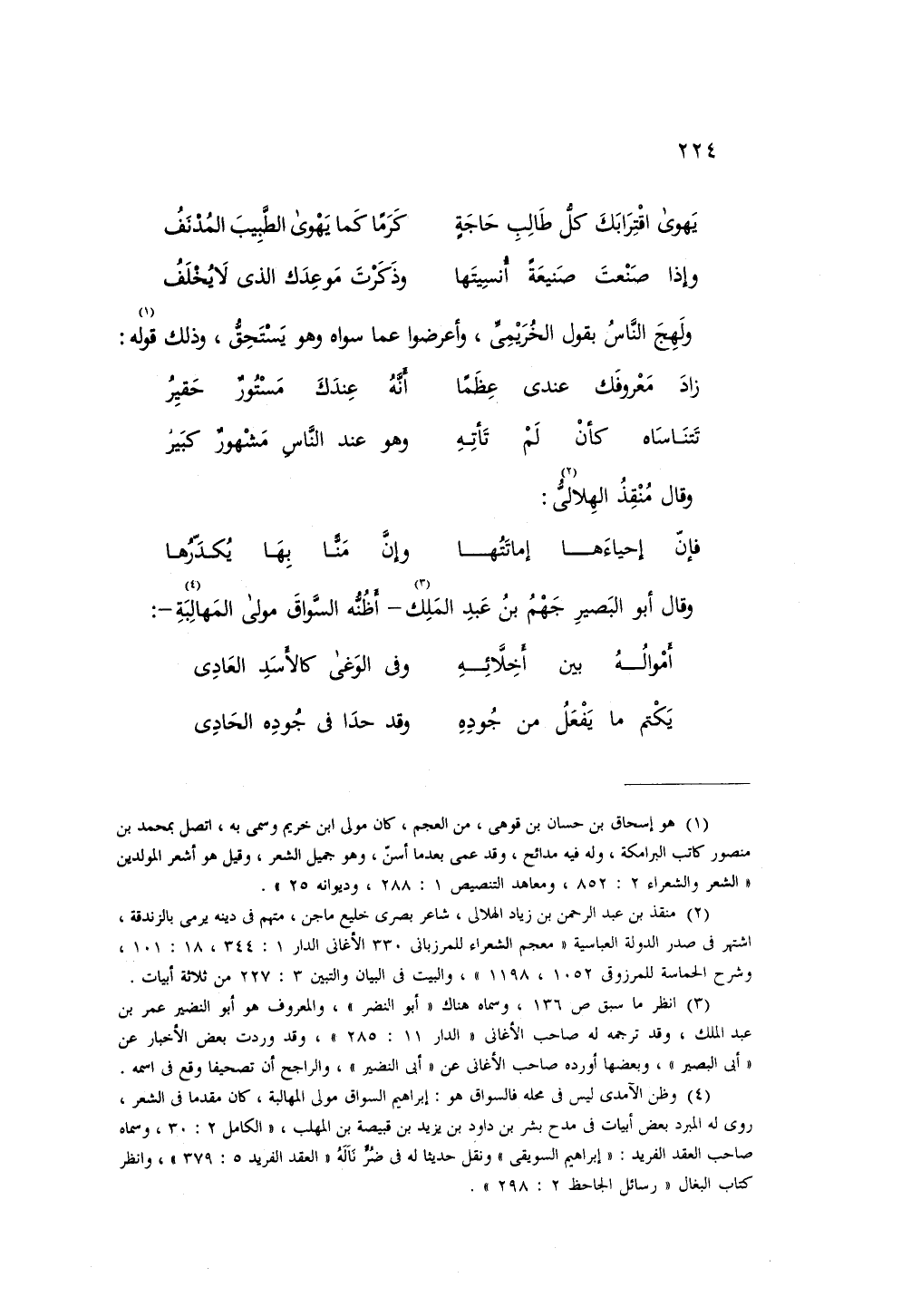ولهج الناس بقول الخريمي، وأعرضوا عما سواه وهو يستحق، وذلك قوله: