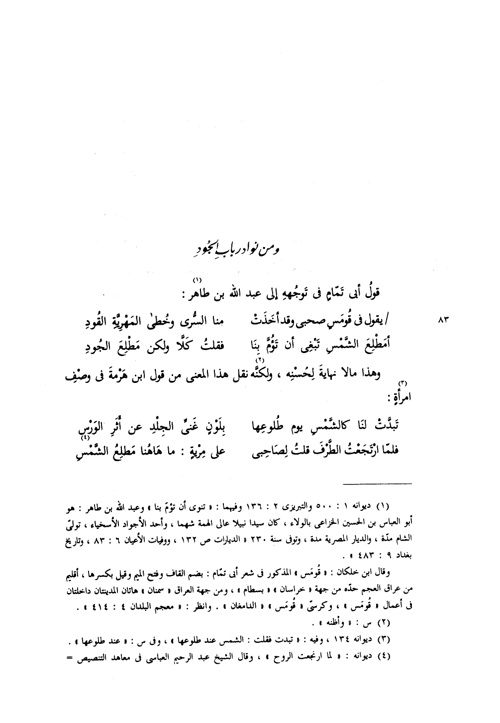 قول أبي تمام في توجهه إلى عبد الله بن طاهر: