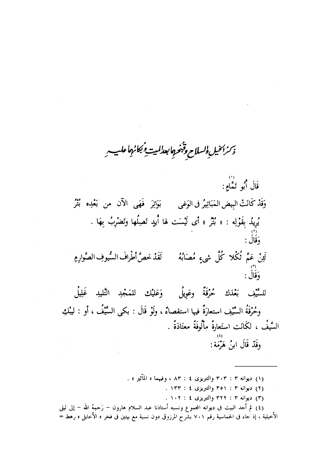 * ذكر الخيل والسلاح وقبحهما بعد الميت وبكائهما عليه