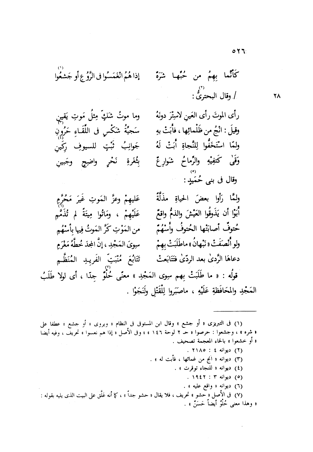 قوله: «ما طلبت بهم سوى المجد» معنى حلو جدًا، أي لولا طلب المجد والمحافظة عليه، ماصبروا للقتل ولنجوا.