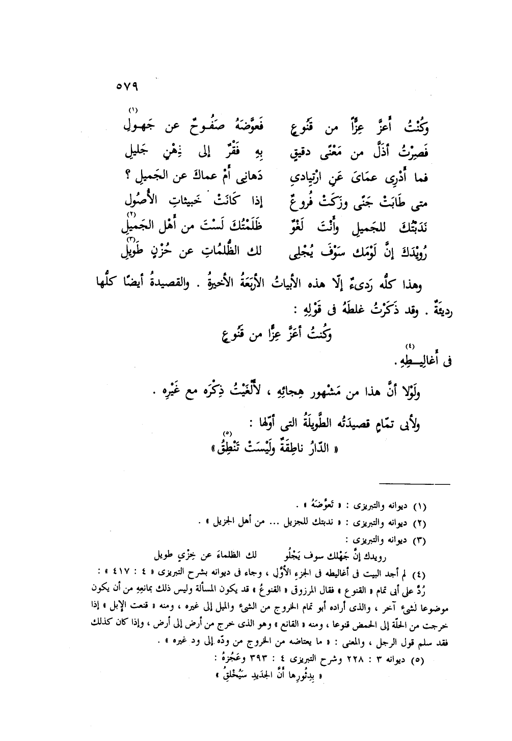 وهذا كله رديء إلا هذه الأبيات الأربعة الأخيره، والقصيدة أيضًا كلها رديئة، وقد ذكرت غلطه في قوله: