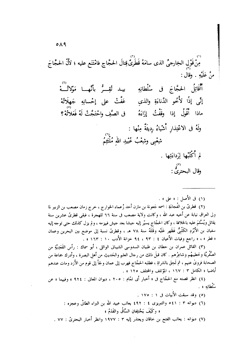 من قول الخارجي الذي سامه قطري قتال الحجاج فامتنع عليه؛ لأن الحجاج من عليه.