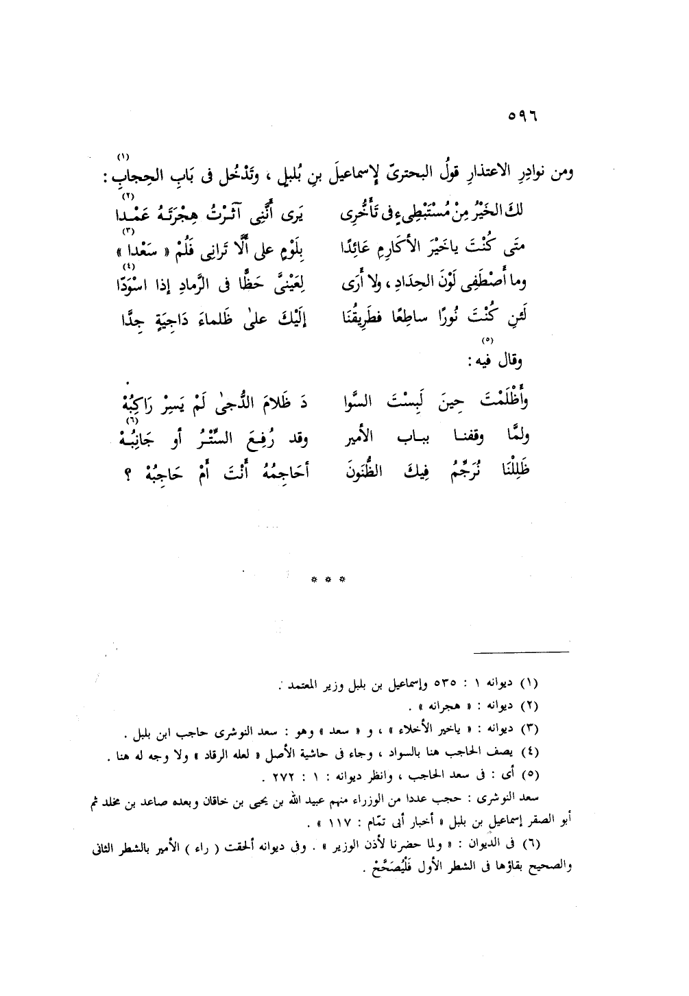 ومن نوادر الاعتذار قول البحتري لإسماعيل بن بلبل، وتدخل في باب الحجاب:
