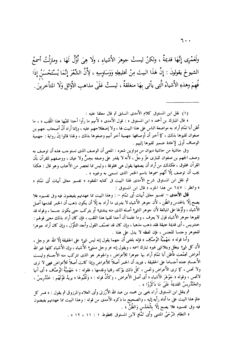 ولعمري إنها قديمة، ولكن ليست جوهر الأشياء، ولا هي أول لها، وما زلت أسمع الشيوخ يقولون: إن هذا البيت من تخليطه ووساوسه، لأن الشعر إنما يستحسن إذا فهم وهذه الأشياء التي يأتي بها منغلقة، ليست على مذهب الأوائل ولا المتأخرين.