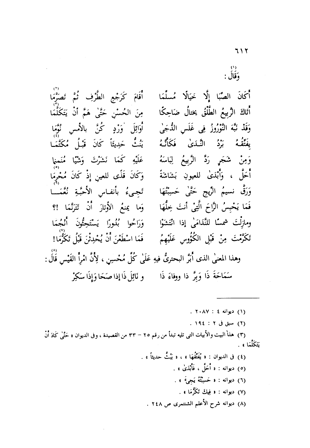 وهذا المعنى الذي أبر البحتري فيه على كل محسن، لأن امرأ القيس قال: