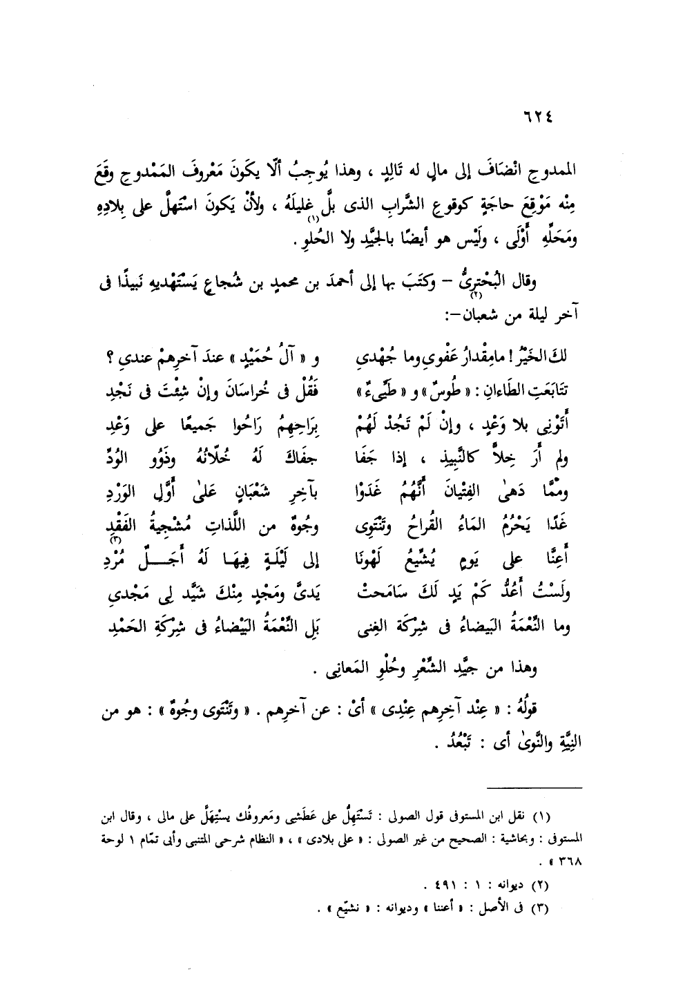 وقال البحتري -وكتب بها إلى أحمد بن محمد بن شجاع يستهديه نبيذاً في آخر ليلة من شعبان-: