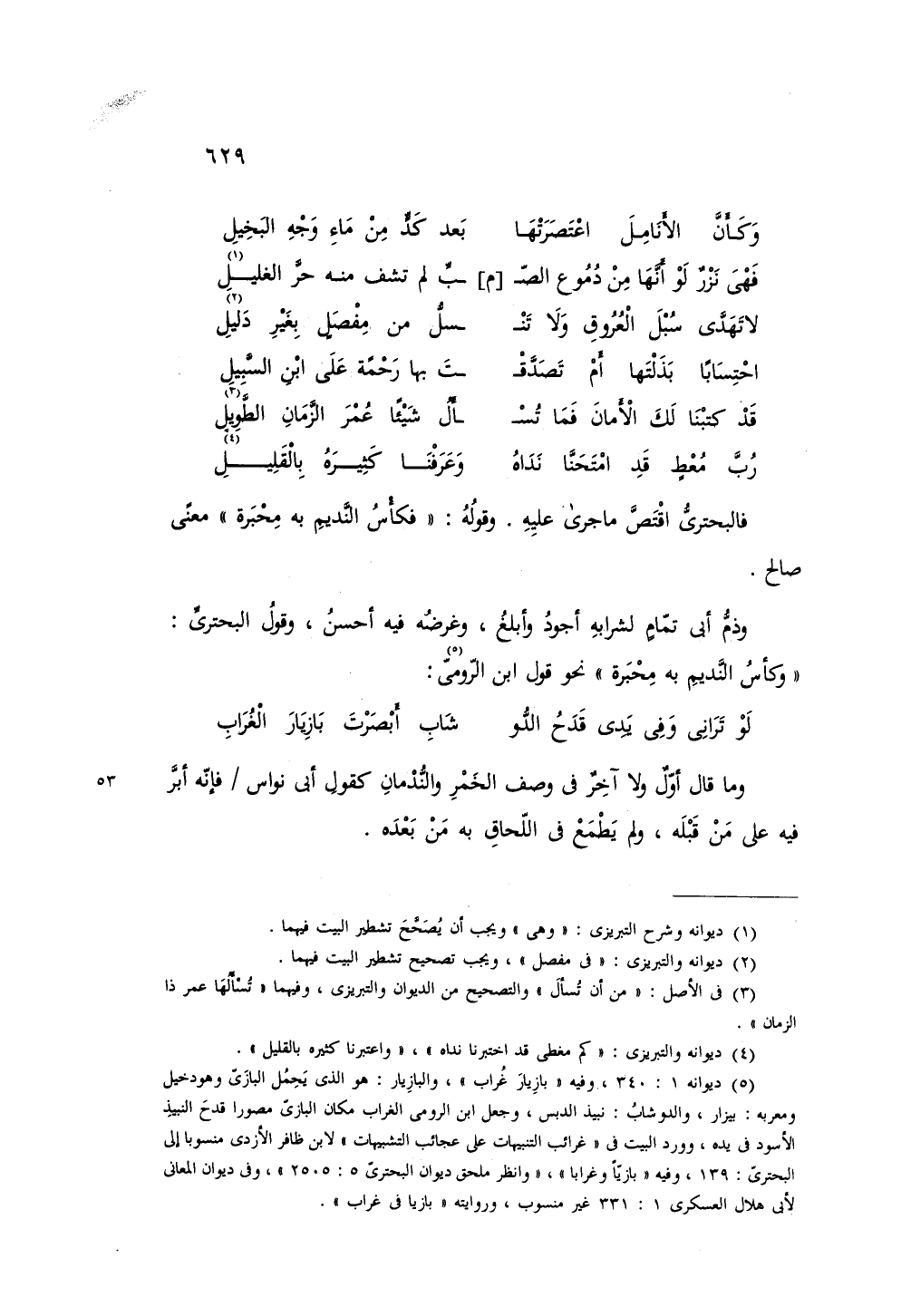 فالبحتري اقتص ما جرى عليه، وقوله: «فكأس النديم به محبرة» معنى صالح.