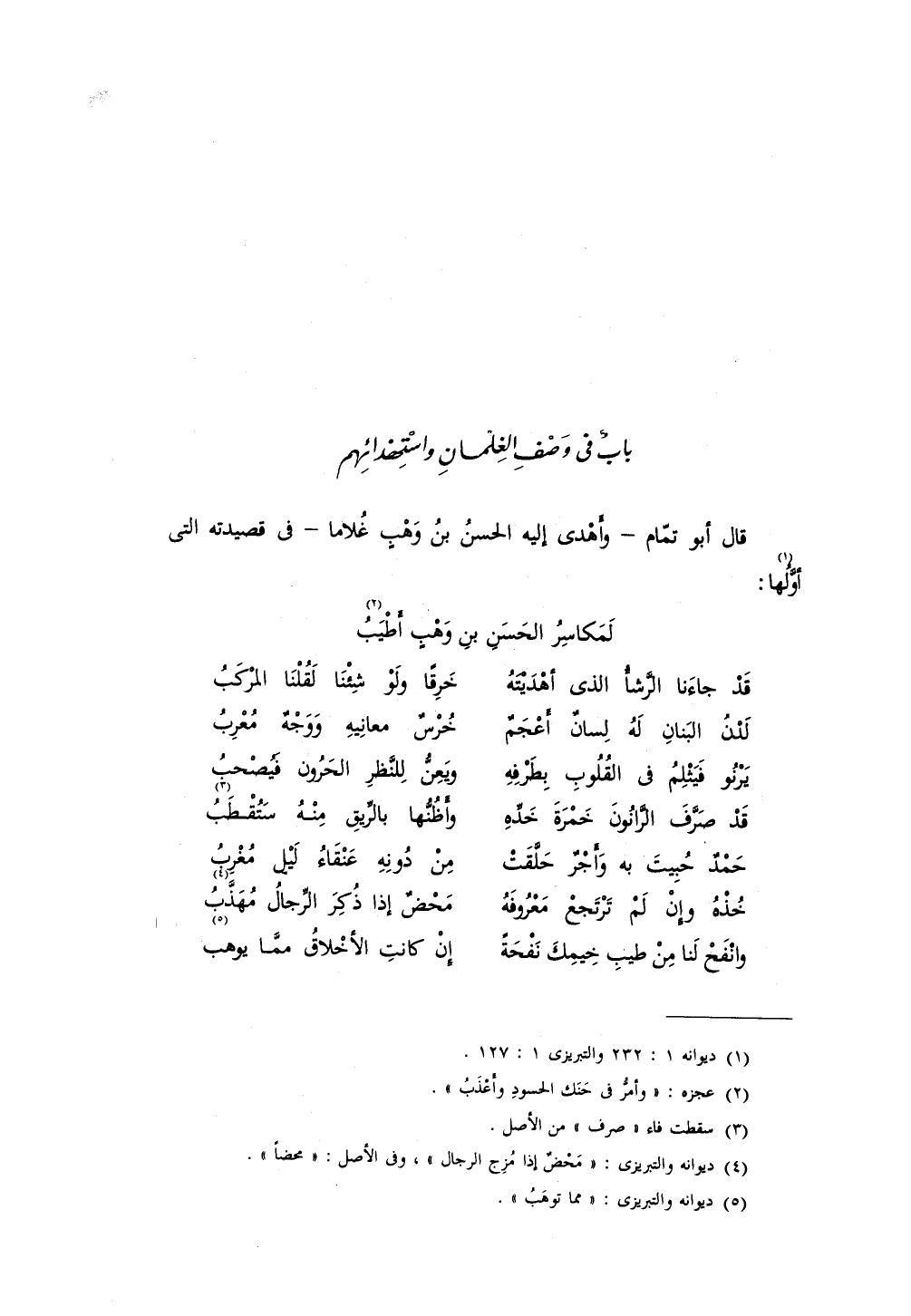 قال أبو تمام -وأهدى إليه الحسن بن وهب غلامًا- في قصيدته التي أولها: