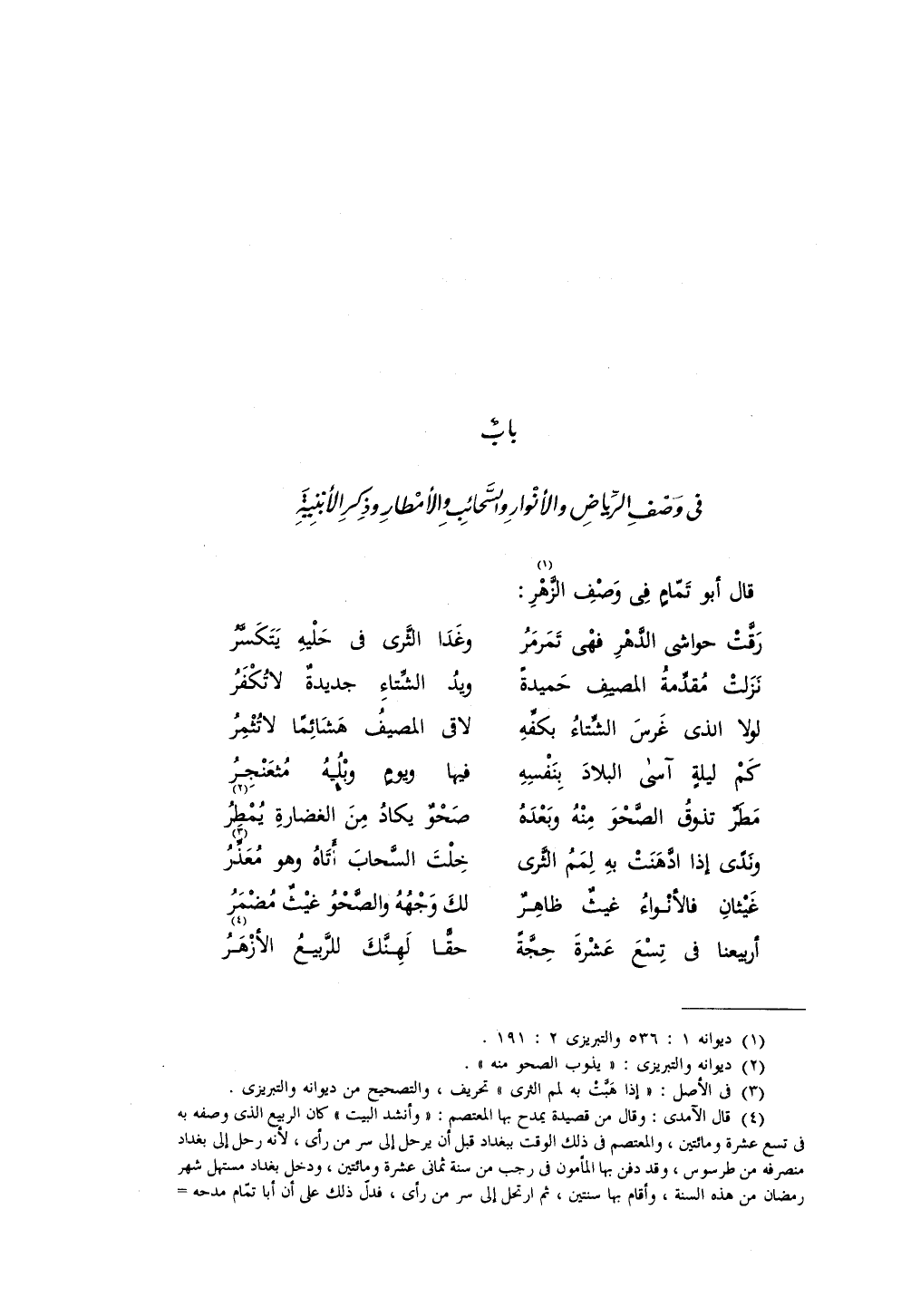 * باب في وصف الرياض والأنوار والسحائب والأمطار وذكر الأبنية