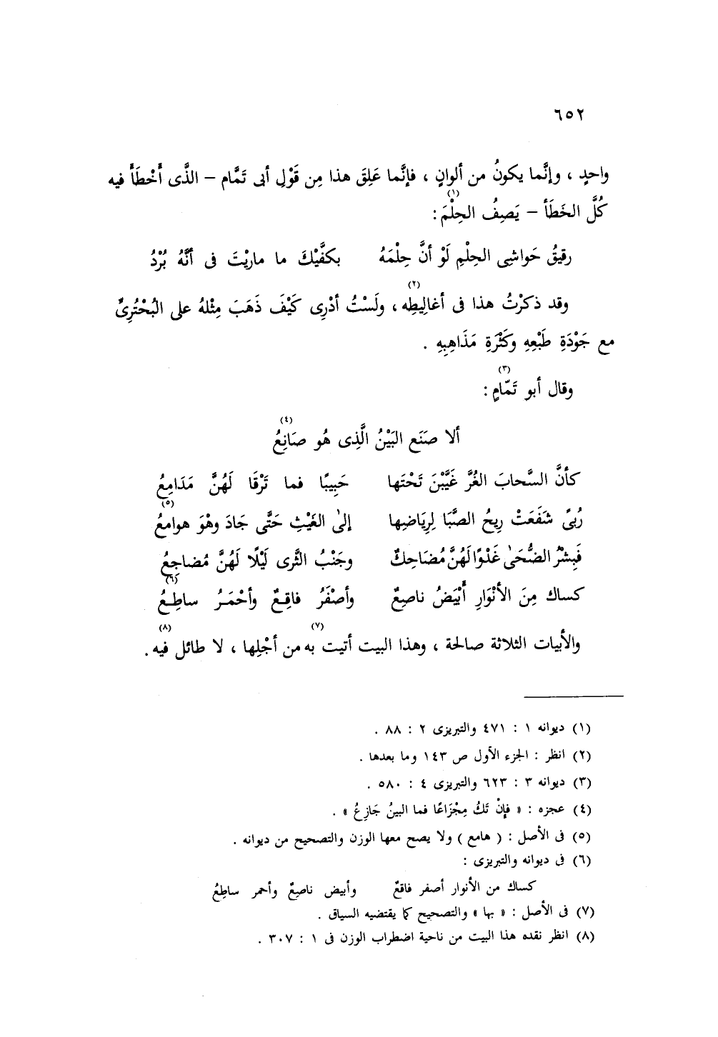 وقد ذكرت هذا في أغاليطه، ولست أدري كيف ذهب مثله على البحتري مع جودة طبعه وكثرة مذاهبه.