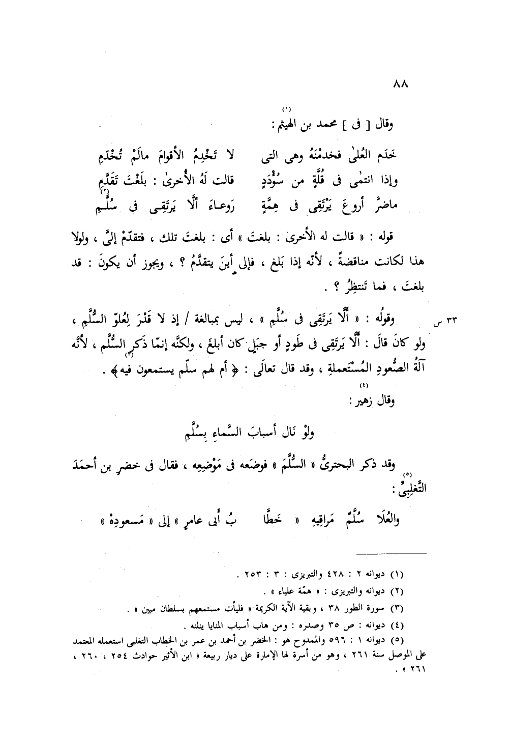 وقد ذكر البحتري «السلم» فوضعه في موضعه، فقال فى خضر بن أحمد التغلبي: