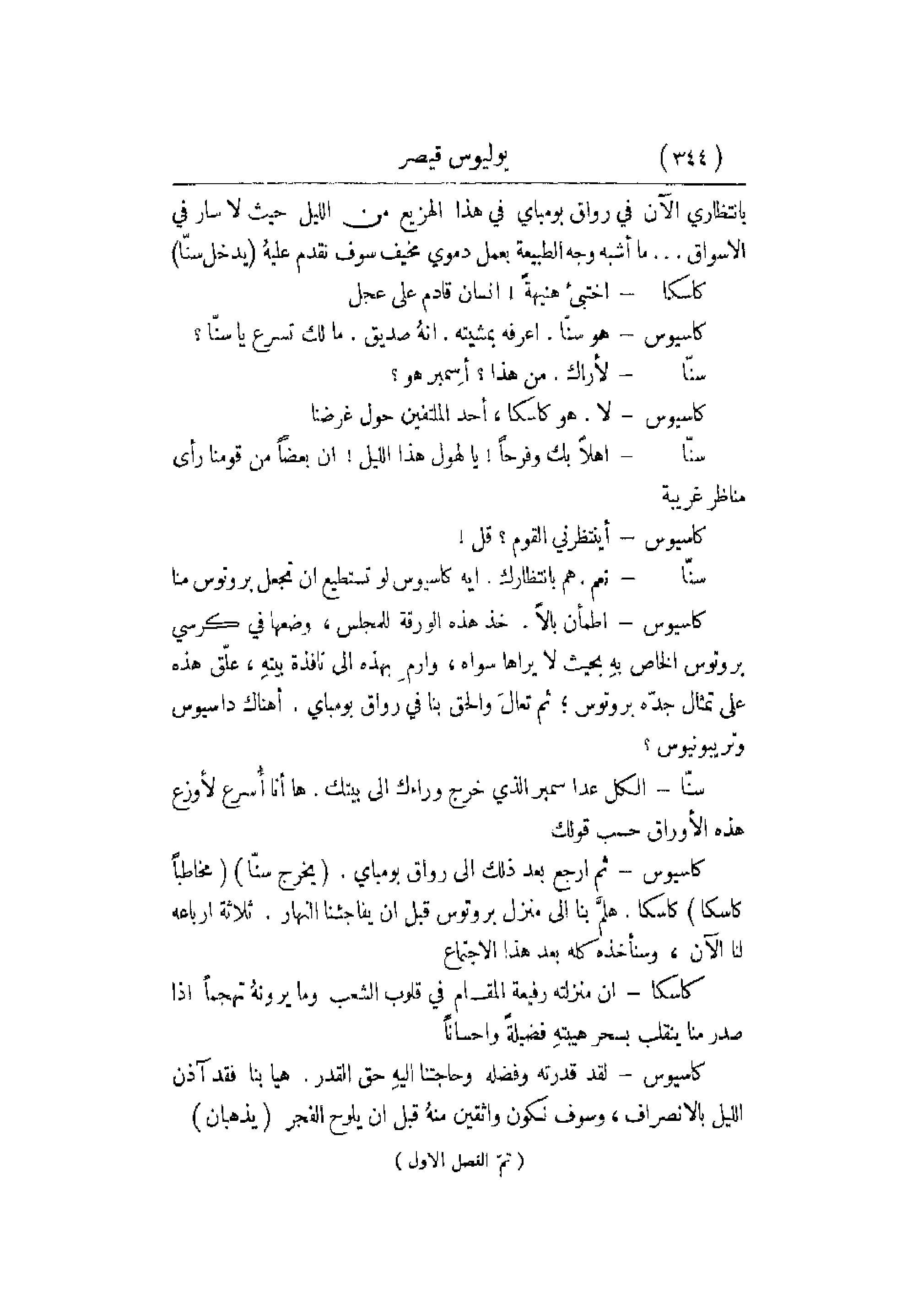 كاسيوس - ثم ارجع بعد ذلك لى رواق بومباي. يخرج سنّا مخاطباً كاسكا كاسكا. هلمَّ بنا إلى منزل بروتوس قبل أن يفاجئنا النهار. ثلاثة أرباعه لنا الآن , وسنأخذه كله بعد هذا الاجتماع