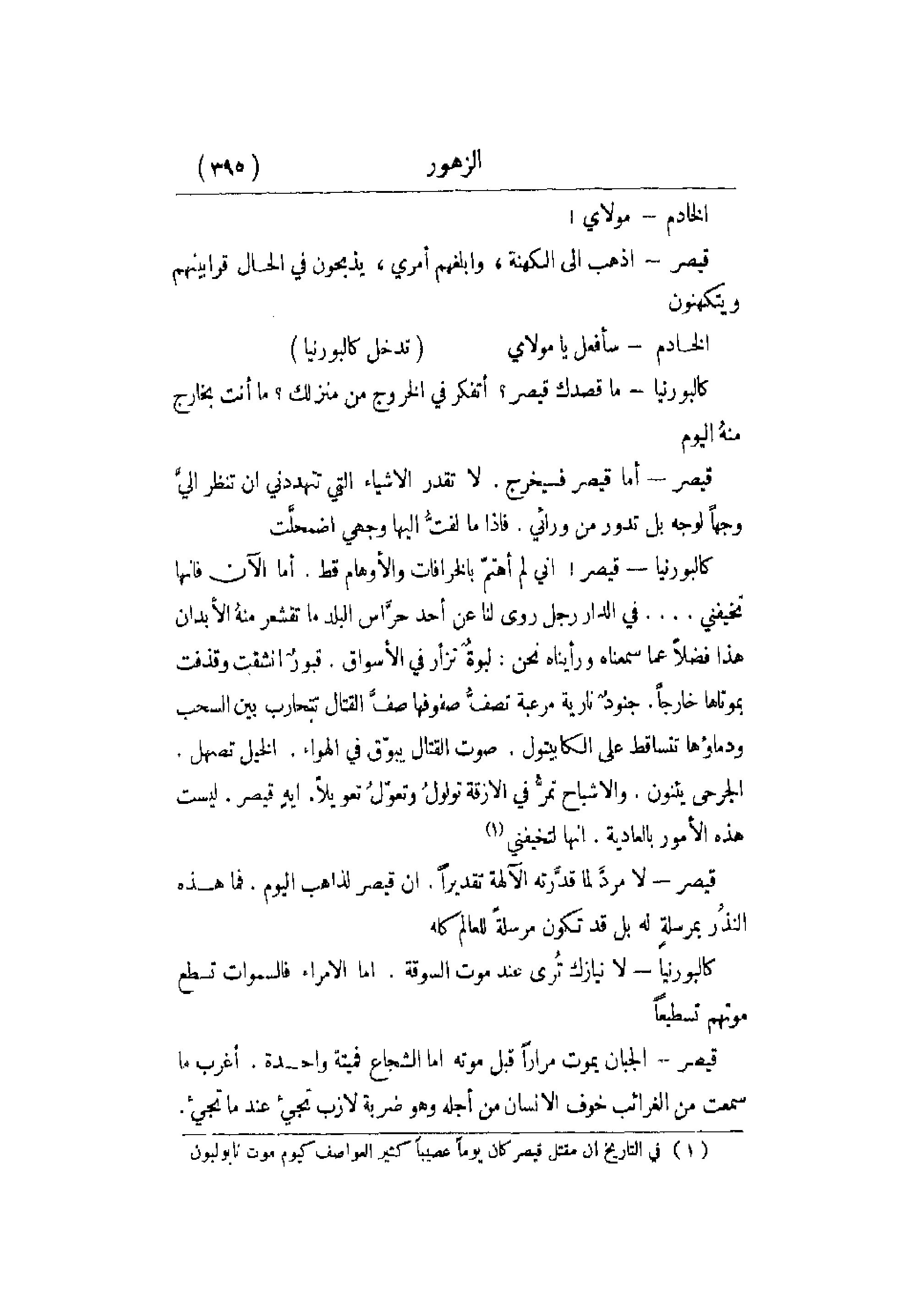 قيصر - لا مردَّ لما قدَّرته الآلهة تقديراً. إن قيصر لذاهب اليوم. فما هذه النذُر بمرسلةٍ له بل قد تكون مرسلةً كله