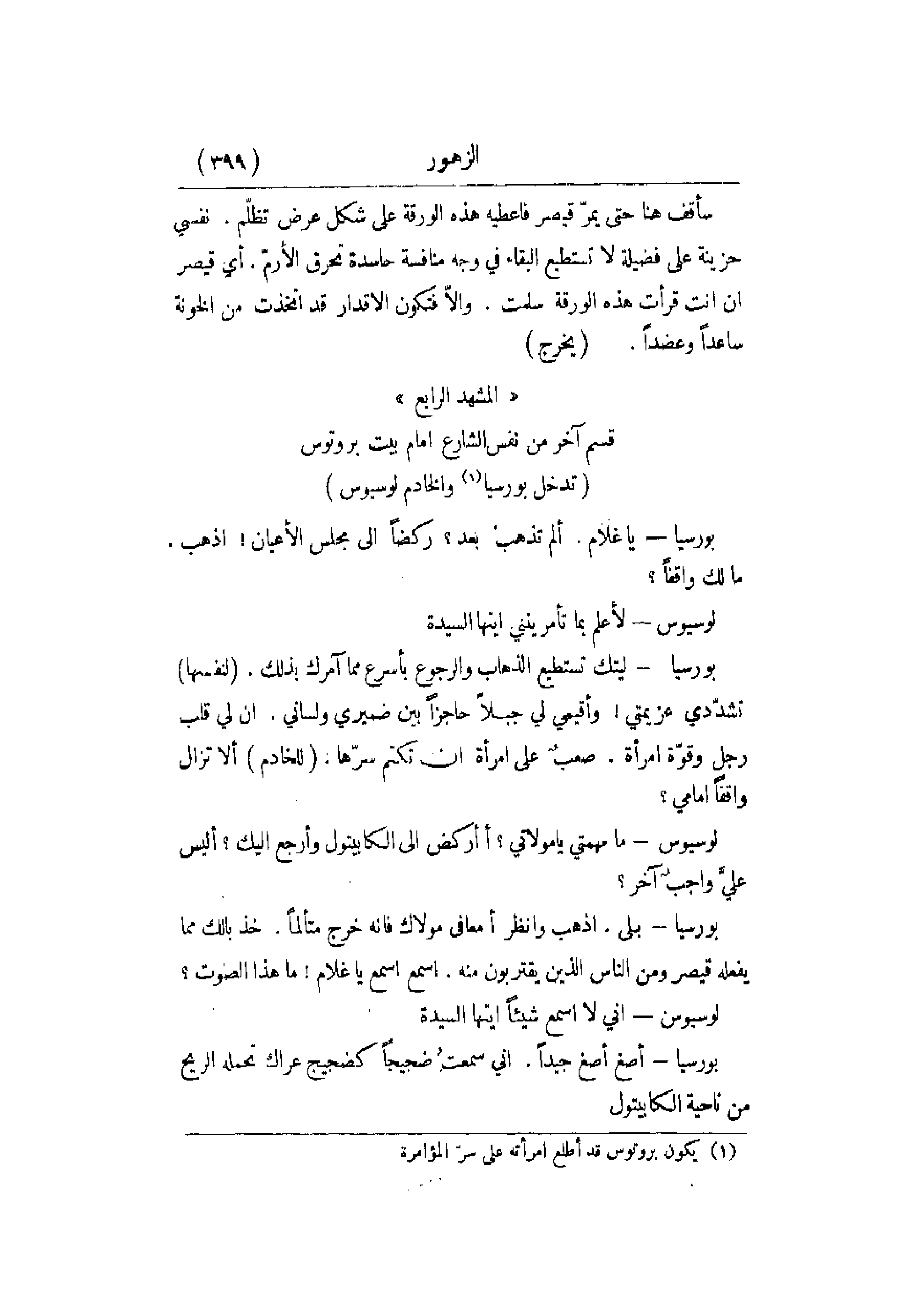 بورسيا - ليتك تستطيع الذهاب والرجوع بأسرع مما أمرك بذلك. لنفسها تشدّدي عزيمتي! وأقيمي لي جبلاً حاجزاً بين ضميري ولساني. إن لي قلب رجل وقوّة امرأة أن تكتم سرّها. للخادم ألا تزال واقفاً أمامي؟