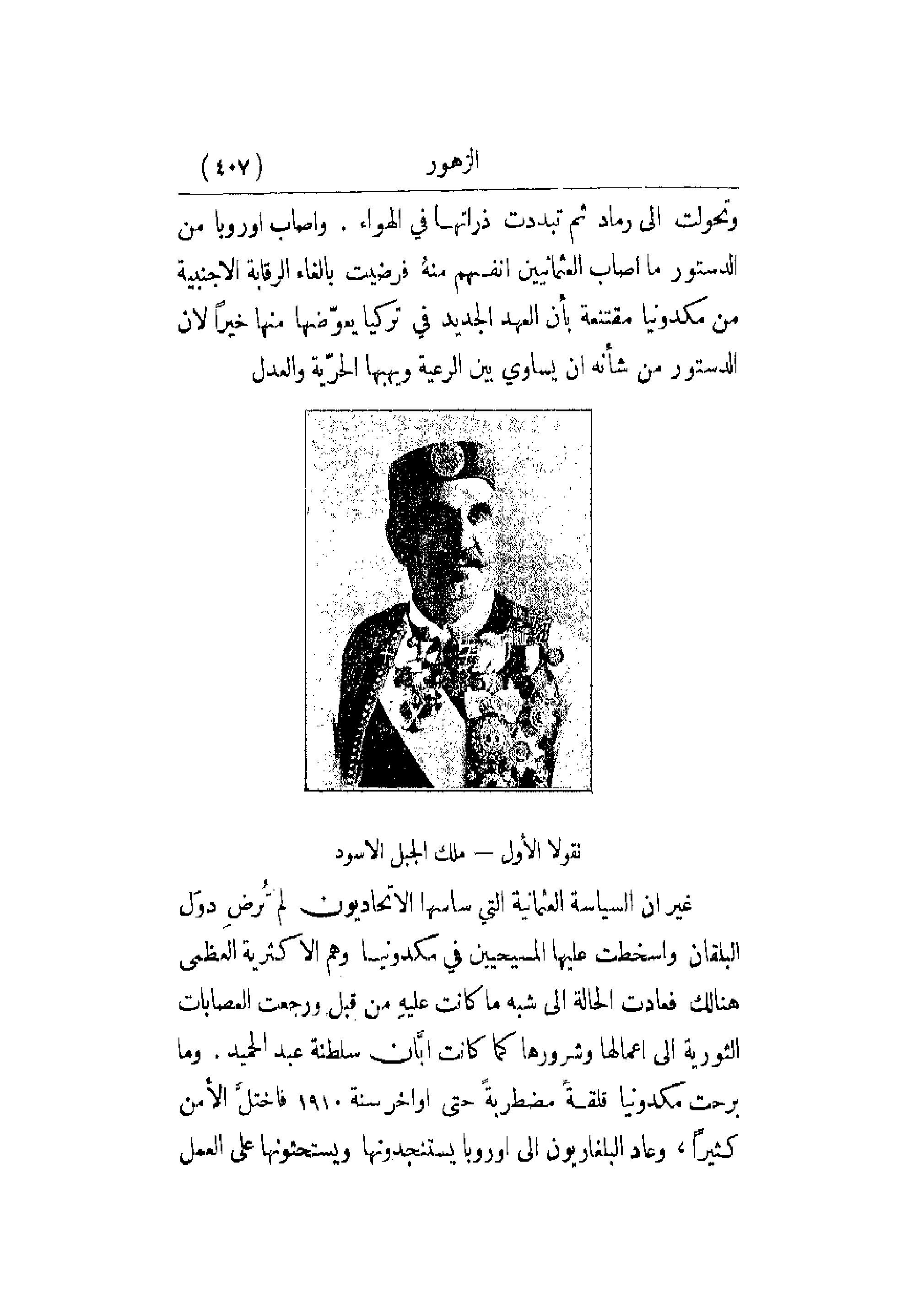 في تركيا يعوّضها منها خيراً لأن الدستور من شأنه أن يساوي بين الرعية ويهبها الحرّية والعدل. غير أن السياسة العثمانية التي ساسها الاتحاديون لم تُرضِ دوَل البلقان وأسخطت عليها المسيحيين في مكدونيا وهم الأكثرية العظمى هنالك فعادت الحالة إلى شبه ما كانت عليهِ من قبل ورجعت العصابات الثورية إلى أعمالها وشرورها كما كانت أبَّان سلطنة عبد الحميد. وما برحت مكدونيا قلقةً مضطربةً حتى أواخر ستة 1910 فاختلَّ الأمن كثيراً , وعاد البلغاريون إلى أوروبا يستنجدونها ويستحثونها على العمل