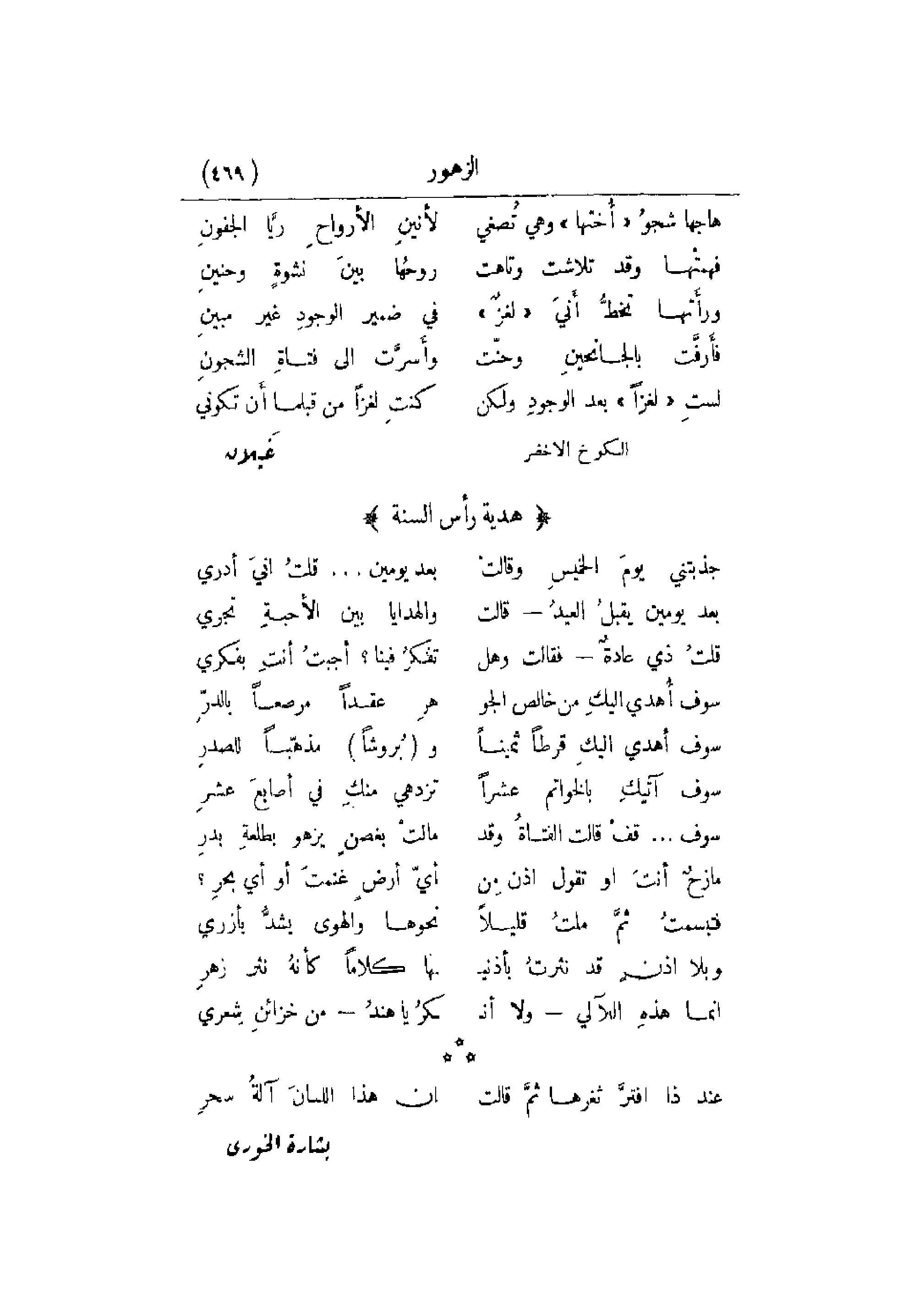 وبلا إذنٍ قد نثرتُ بأذني ... ها كلاماً كأنهُ نثر زهرِ