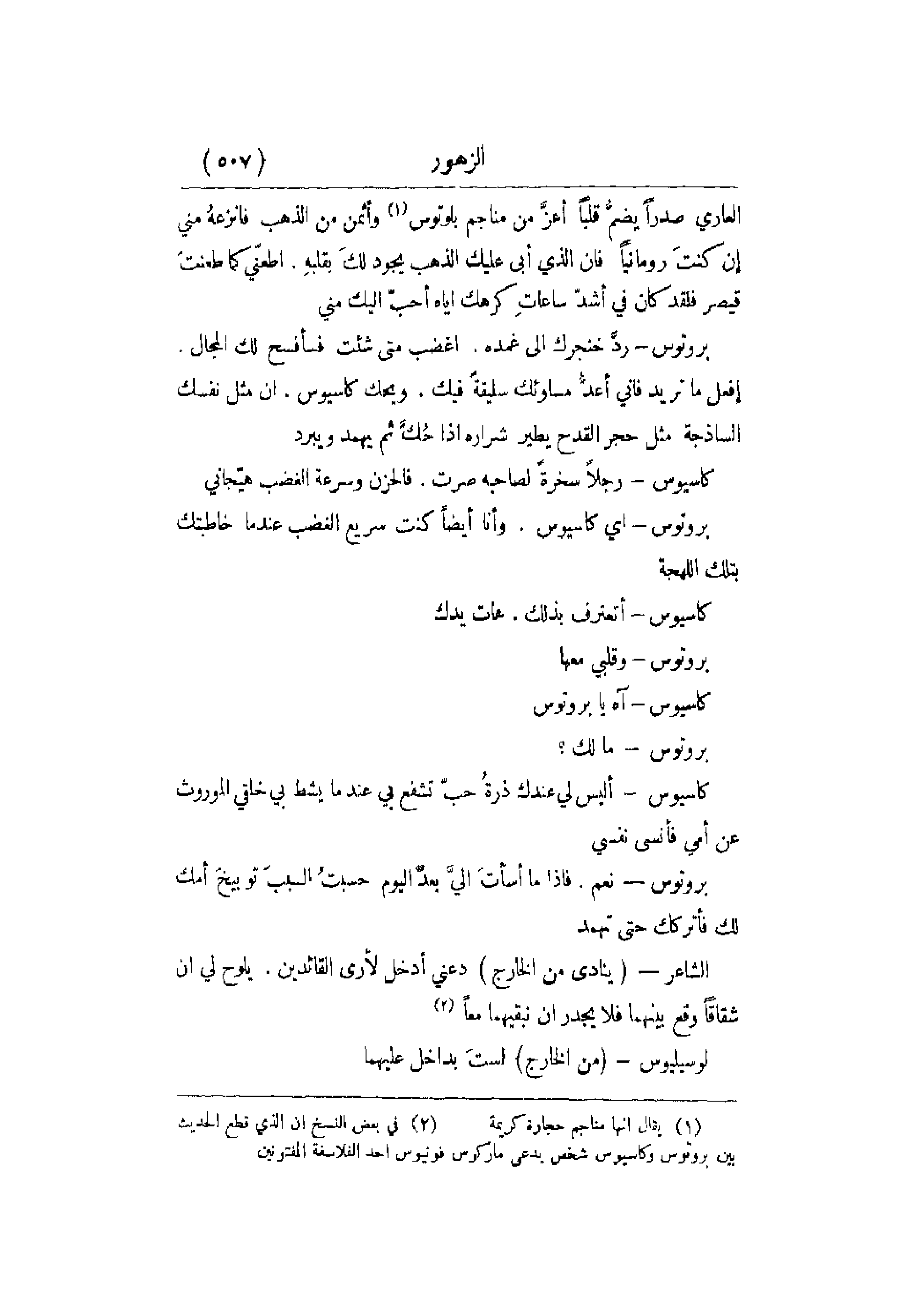 كاسيوس - أليس لي عندك ذرةُ حبّ تشفع بي عندما يشط بي خلقي الموروث عن أمي فأنسى نفسي