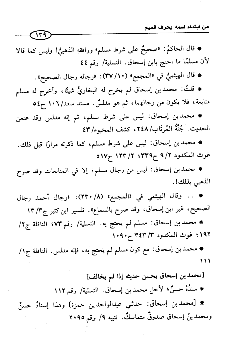 * محمد بن إسحاق: مسلم لم يحتج به. التسلية / رقم 73؛ النافلة ج2/ 192؛ غوث المكدود 3/ 343 ح 1090
